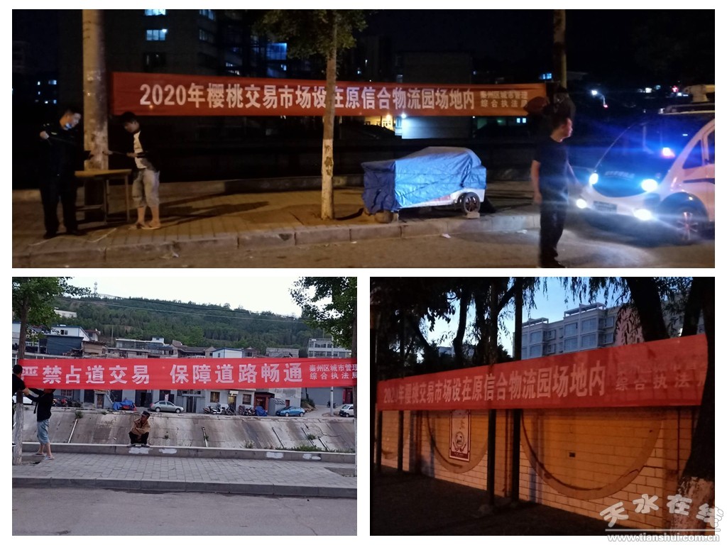 五月中旬以來,秦州櫻桃大量上市,城區(qū)流動攤點成倍增加,對市容環(huán)境和交通秩序沖擊較大。秦州區(qū)執(zhí)法局迅速行動,嚴(yán)格落實區(qū)委、區(qū)政府安排部署,聯(lián)合交警和玉泉鎮(zhèn),集中執(zhí)法力量,扎實開展“晝夜執(zhí)勤監(jiān)管,助力果農(nóng)增收”專項行動,以煙鋪村大櫻桃市場、原信合物流園、果蔬批發(fā)市場為點,43條主次干道為線,點線結(jié)合,細化措施,責(zé)任到人,高標(biāo)準(zhǔn)打造整潔有序的交易環(huán)境。