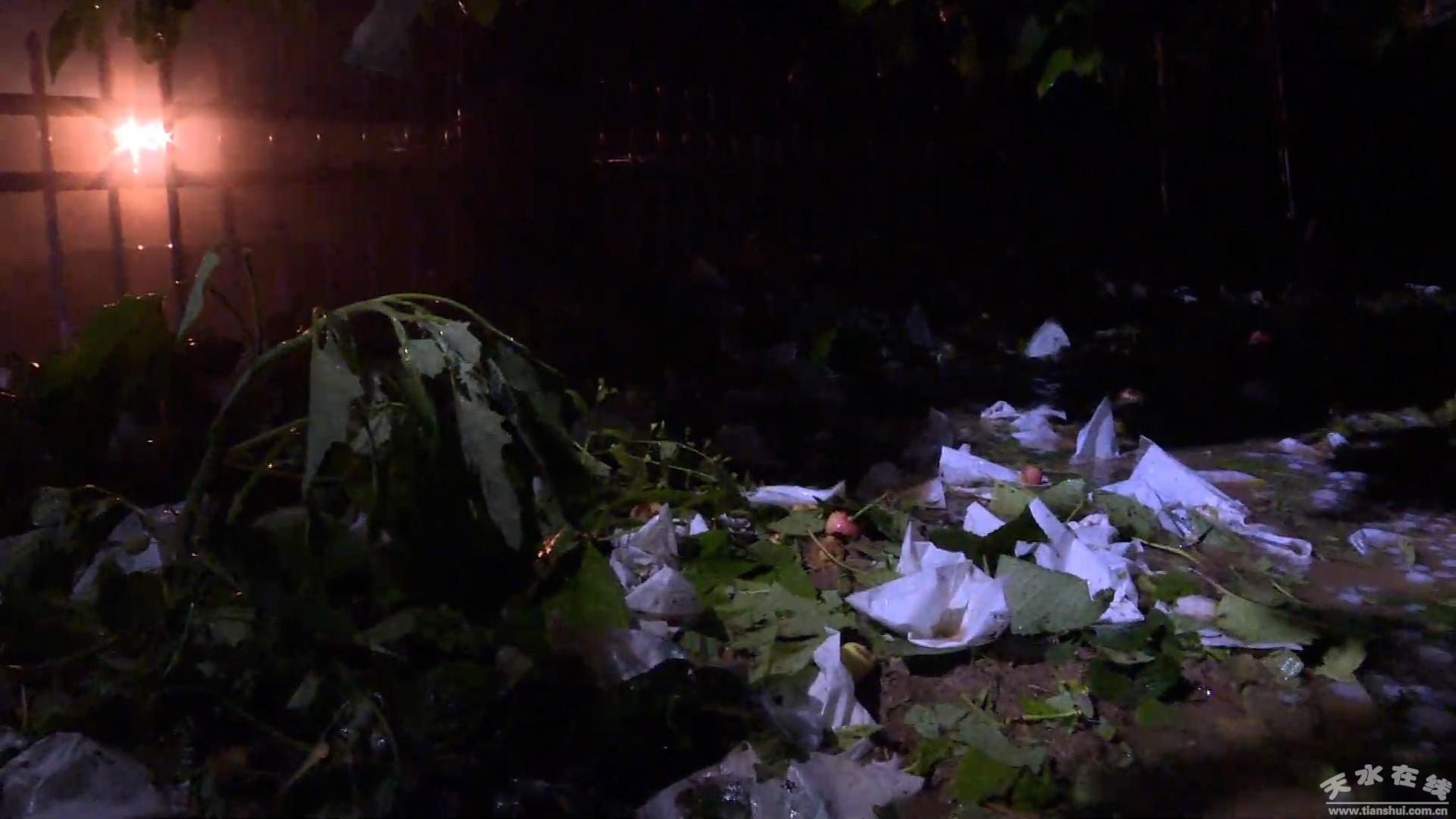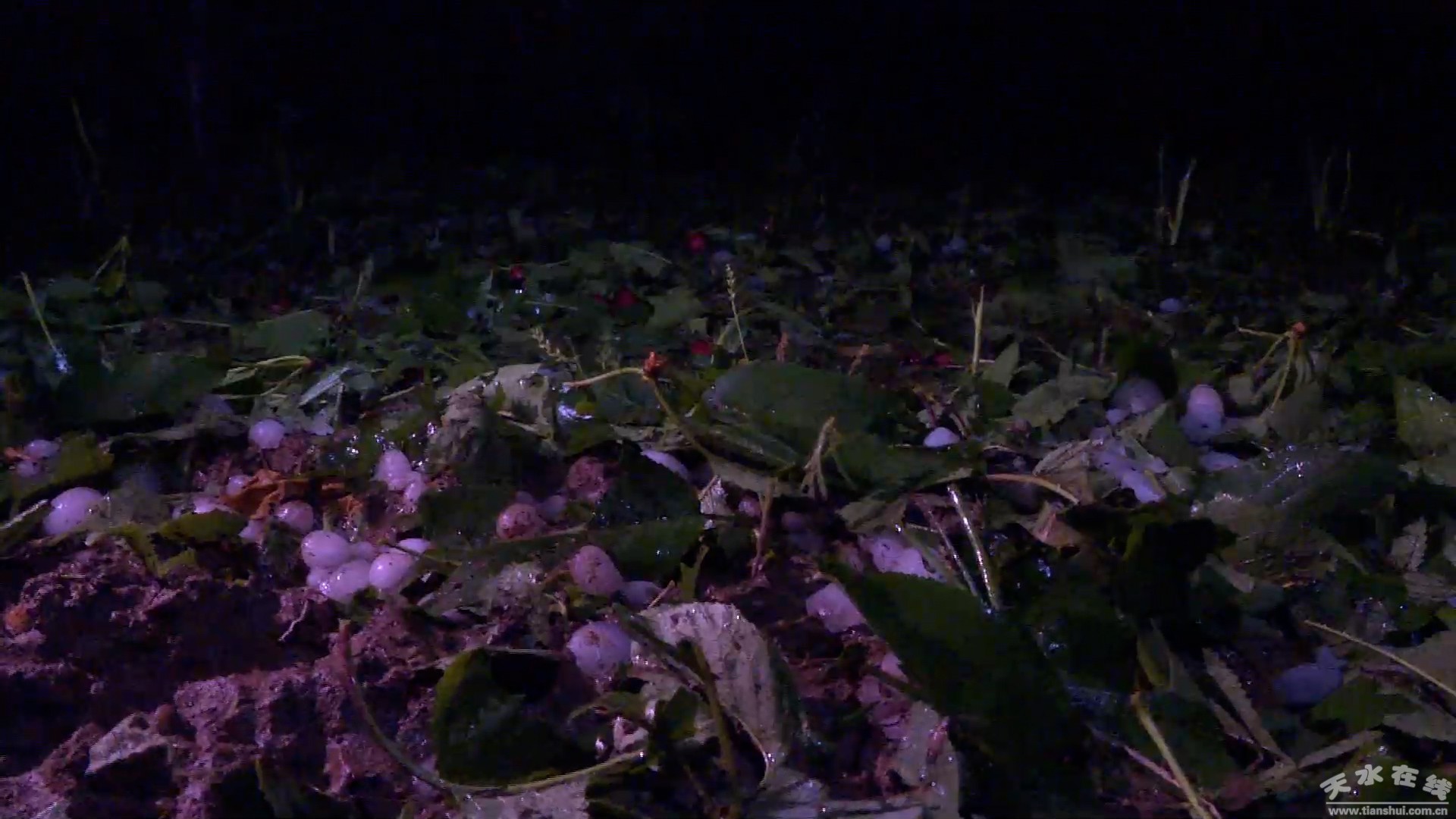 31日晚上十點,距離冰雹結束已經(jīng)過了一個小時。記者在太京鎮(zhèn)櫻桃果園看到,受冰雹的影響,樹葉和櫻桃基本上已經(jīng)被打碎在了地里,整個地里依然是一層白色的冰雹。