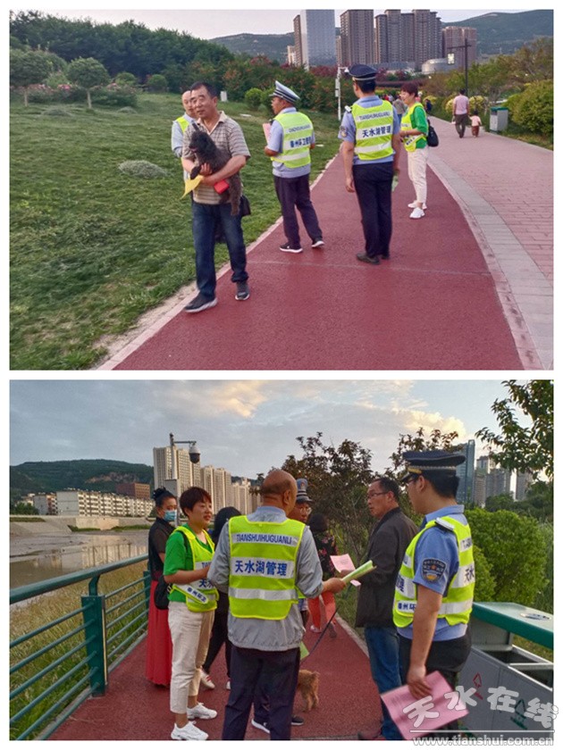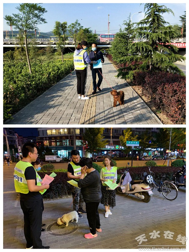 輿論宣傳引導(dǎo),推動行動開展。加強(qiáng)對市民群眾的宣傳引導(dǎo)工作,組織管理員在天水湖、藉河風(fēng)情線、龍城廣場、中華東西路步行街、伏羲城步行街、成紀(jì)兒童公園、玉泉觀小廣場等城市重點(diǎn)公共區(qū)域和人員相對密集的公園等公共場所等禁犬區(qū)勸導(dǎo)市民,禁止攜帶犬只進(jìn)入以上區(qū)域。并通過懸掛橫幅、張貼宣傳海報(bào)、發(fā)放《關(guān)于開展文明養(yǎng)犬整治的行動通告》、全方位向廣大群眾宣傳文明養(yǎng)犬常識和違規(guī)養(yǎng)犬的法律后果,營造了文明養(yǎng)犬的社會輿論氛圍。