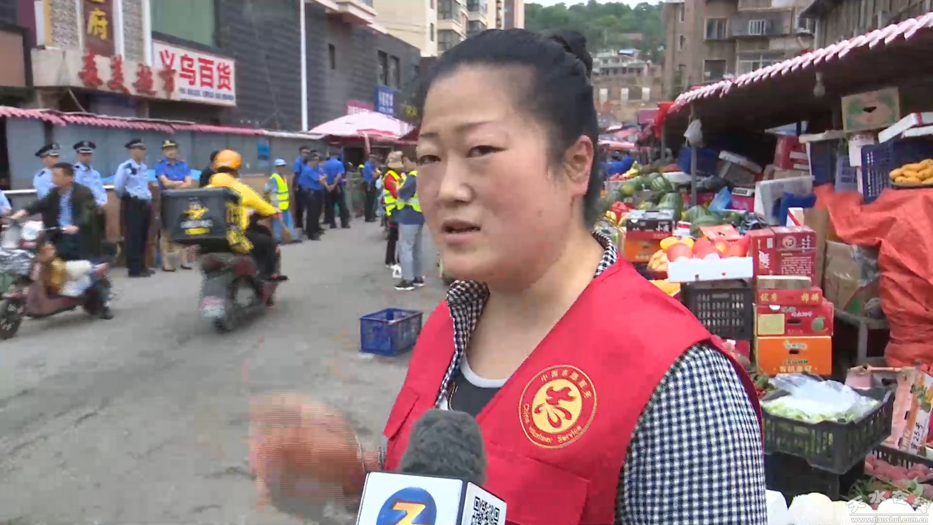 “這條路長期被擺攤占道,特別影響我們出行,尤其到放學(xué)、下班的時候,車、小孩擁擠到一起容易出現(xiàn)道路交通事故!敝谐墙值谰G色市場社區(qū)居民張利娟說。