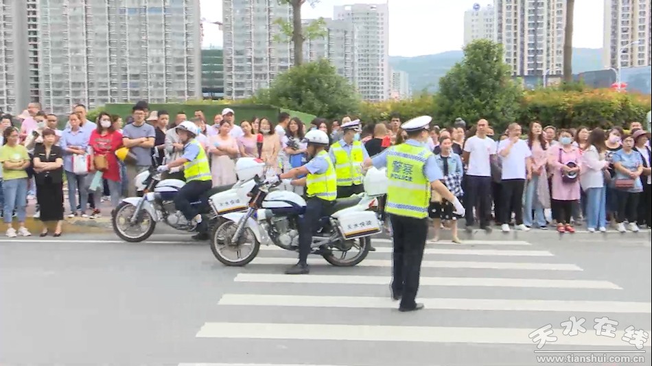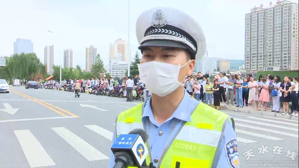 為確保中考順利進(jìn)行,秦州區(qū)各部門通力合作,全力護(hù)航,對(duì)考點(diǎn)周邊道路進(jìn)行交通管制,在考點(diǎn)路口加強(qiáng)交通疏導(dǎo),提醒駕駛?cè)嗽诳紙?chǎng)周邊禁鳴喇叭,為考生營(yíng)造安全、舒心的考試環(huán)境。