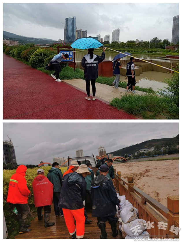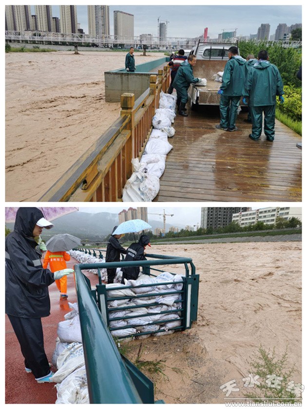 受持續(xù)強(qiáng)降雨影響,我市面臨嚴(yán)峻的防汛形勢(shì),藉河水位持續(xù)上漲,水流湍急。連日來,秦州區(qū)環(huán)衛(wèi)治理中心各部門黨員干部組成防汛搶險(xiǎn)黨員先鋒隊(duì)、應(yīng)急分隊(duì)共計(jì)160余人全面開展防汛搶險(xiǎn)工作,提前準(zhǔn)備7000余個(gè)沙袋,上百噸沙土、百余把鐵锨等防汛物資用于應(yīng)急搶險(xiǎn)。同時(shí)嚴(yán)格執(zhí)行全天24小時(shí)防汛值班和領(lǐng)導(dǎo)帶班制度,對(duì)藉河風(fēng)情線和天水湖水位進(jìn)行嚴(yán)密監(jiān)測(cè),加強(qiáng)監(jiān)測(cè)預(yù)測(cè)、預(yù)報(bào)預(yù)警,做到雨情、水位半個(gè)小時(shí)一匯報(bào),及時(shí)主動(dòng)收集雨情計(jì)水位信息。各級(jí)防汛責(zé)任人加強(qiáng)應(yīng)急巡查值守,對(duì)水位超過警戒線的區(qū)域第一時(shí)間拉起警戒線,設(shè)立安全警示牌,勸導(dǎo)游人盡快離開,確保市民群眾生命安全。全力做好藉河風(fēng)情線、天水湖等重點(diǎn)區(qū)域的防汛工作。