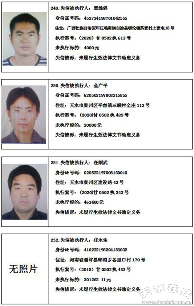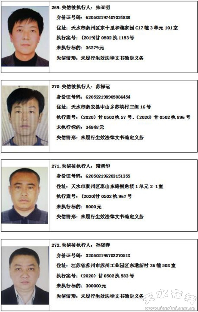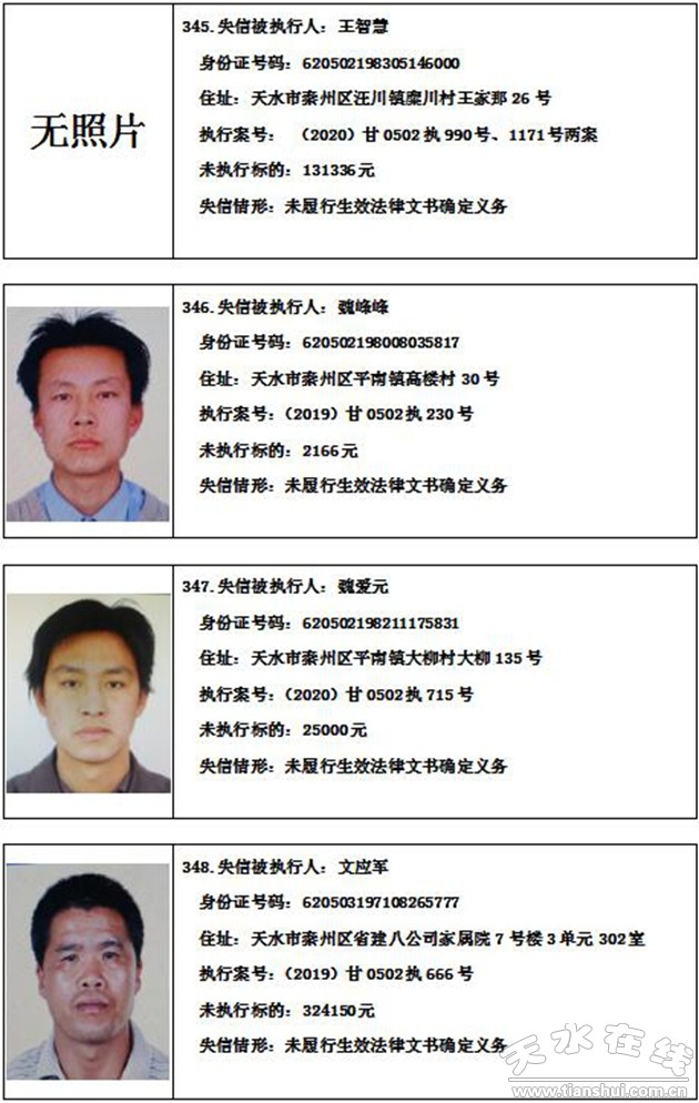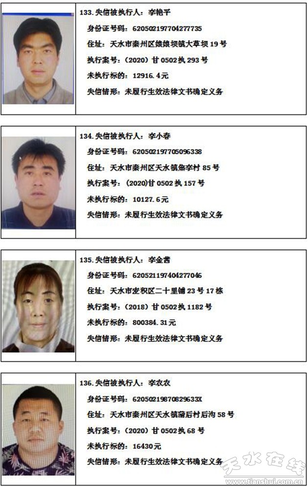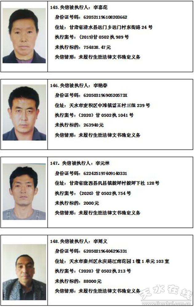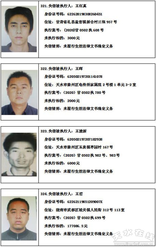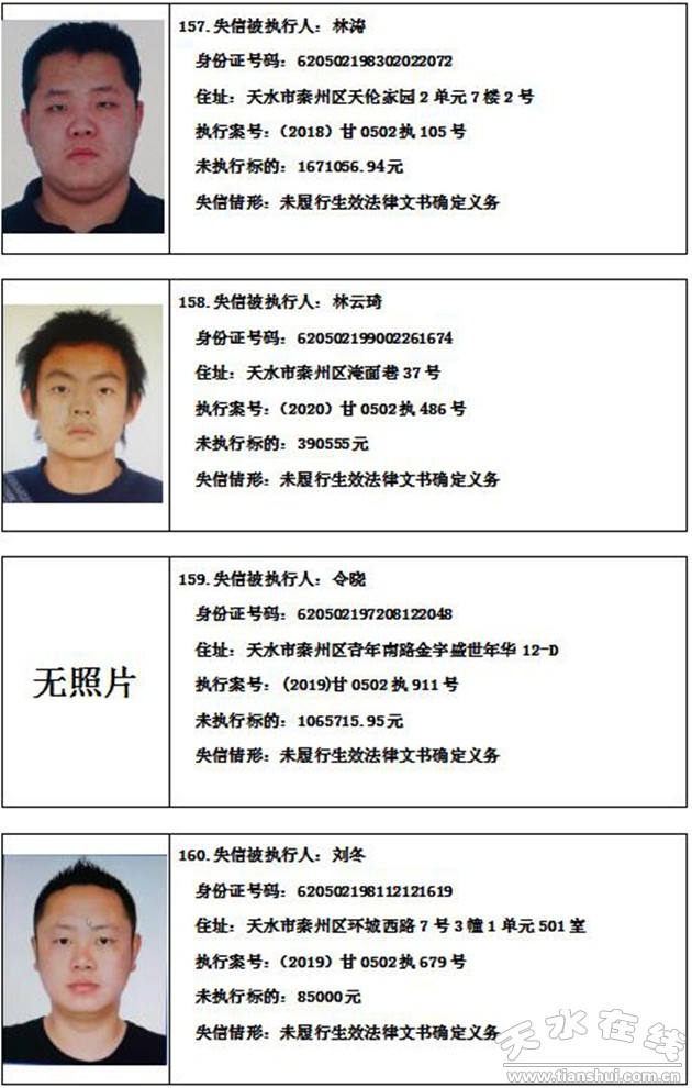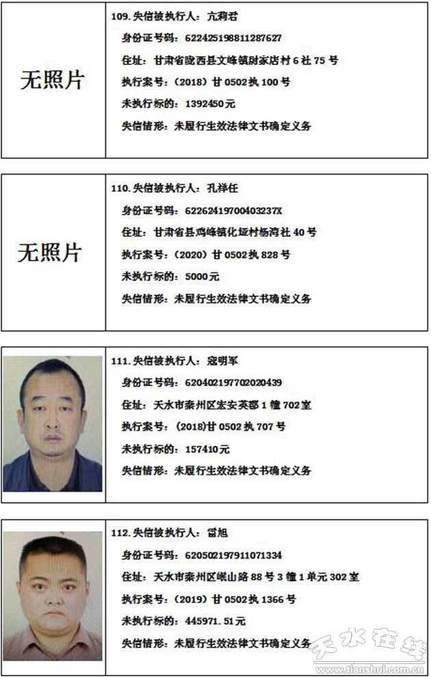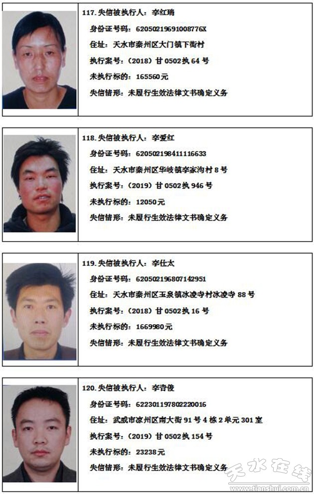 為進(jìn)一步制裁規(guī)避執(zhí)行行為,保障勝訴當(dāng)事人的合法權(quán)益,推進(jìn)社會誠信體系建設(shè),依照《中華人民共和國民事訴訟法》、《最高人民法院關(guān)于公布失信被執(zhí)行人名單信息的若干規(guī)定》等法律、司法解釋的有關(guān)規(guī)定,現(xiàn)對一批已進(jìn)入執(zhí)行程序,且尚未全部履行義務(wù)的被執(zhí)行人進(jìn)行媒體曝光,并敦促所有被執(zhí)行人自覺履行生效法律文書確定的義務(wù),通告如下: