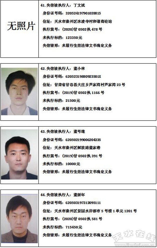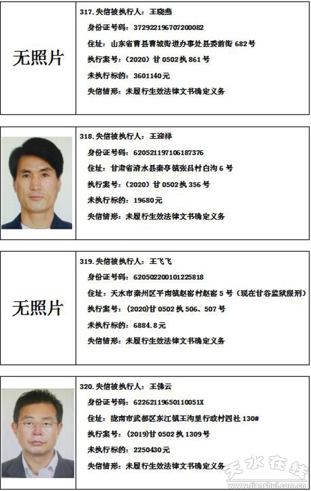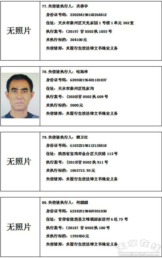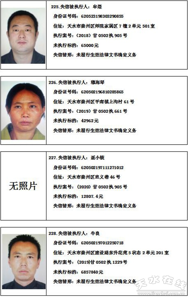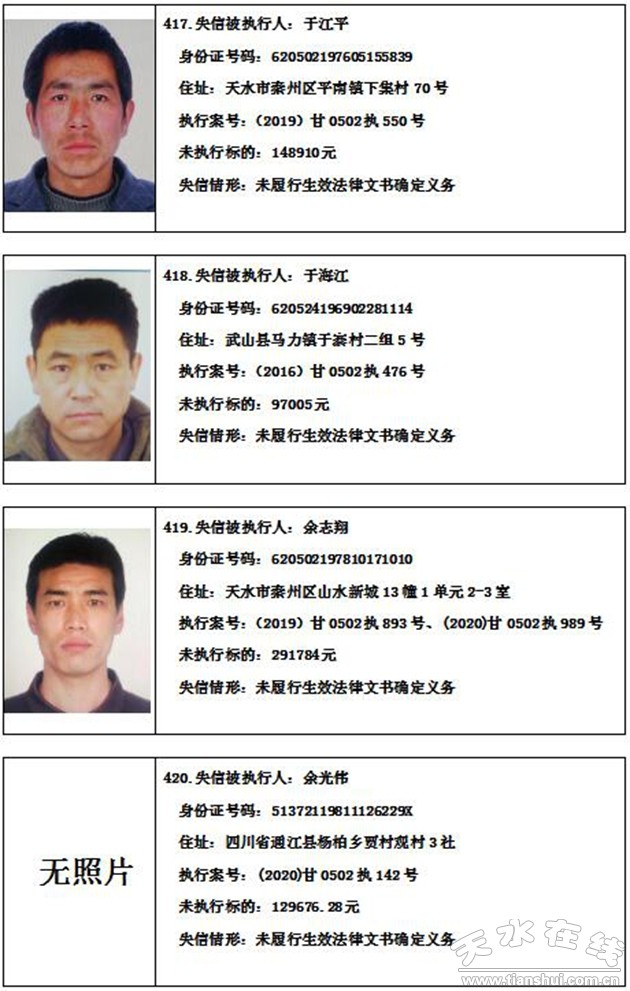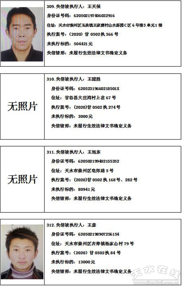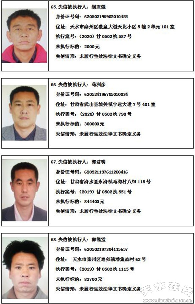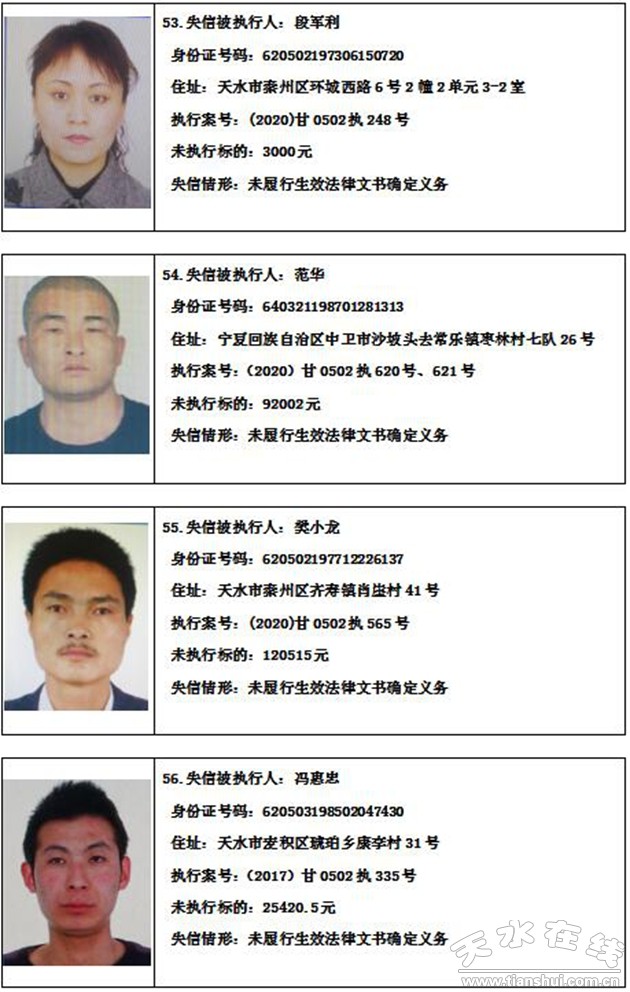 為進(jìn)一步制裁規(guī)避執(zhí)行行為,保障勝訴當(dāng)事人的合法權(quán)益,推進(jìn)社會誠信體系建設(shè),依照《中華人民共和國民事訴訟法》、《最高人民法院關(guān)于公布失信被執(zhí)行人名單信息的若干規(guī)定》等法律、司法解釋的有關(guān)規(guī)定,現(xiàn)對一批已進(jìn)入執(zhí)行程序,且尚未全部履行義務(wù)的被執(zhí)行人進(jìn)行媒體曝光,并敦促所有被執(zhí)行人自覺履行生效法律文書確定的義務(wù),通告如下: