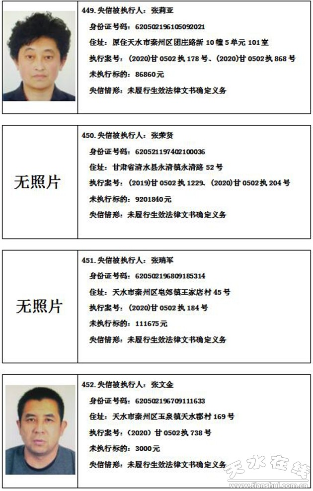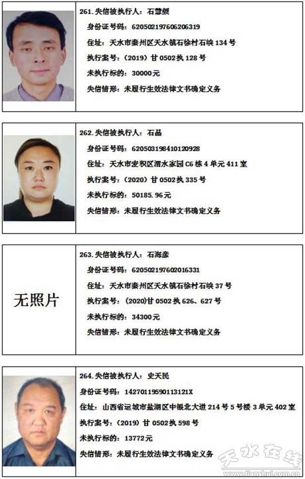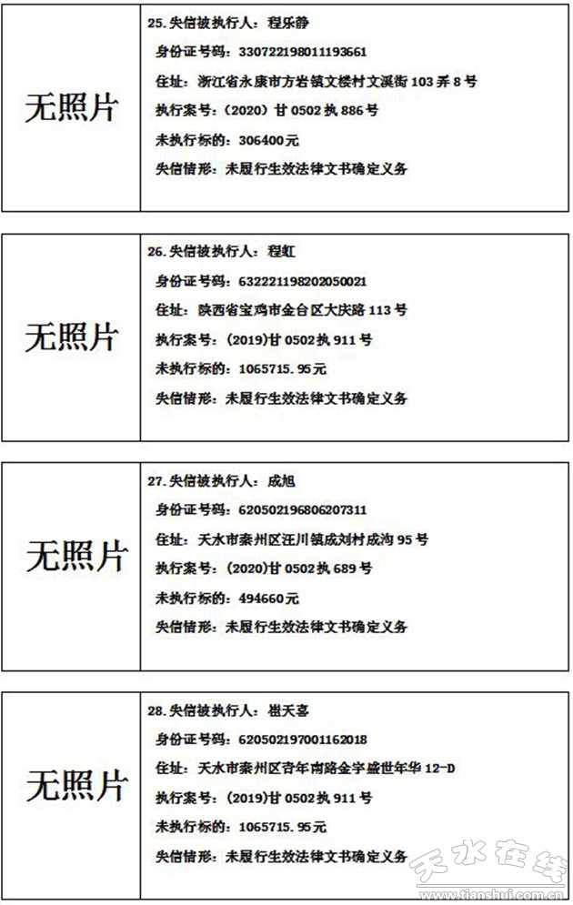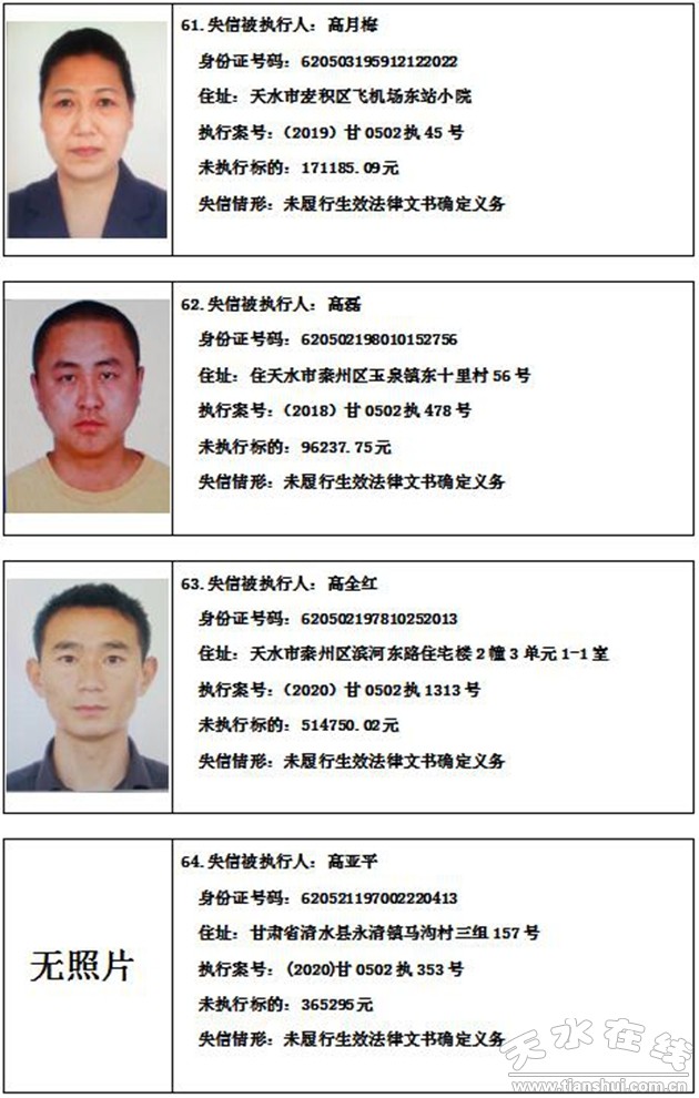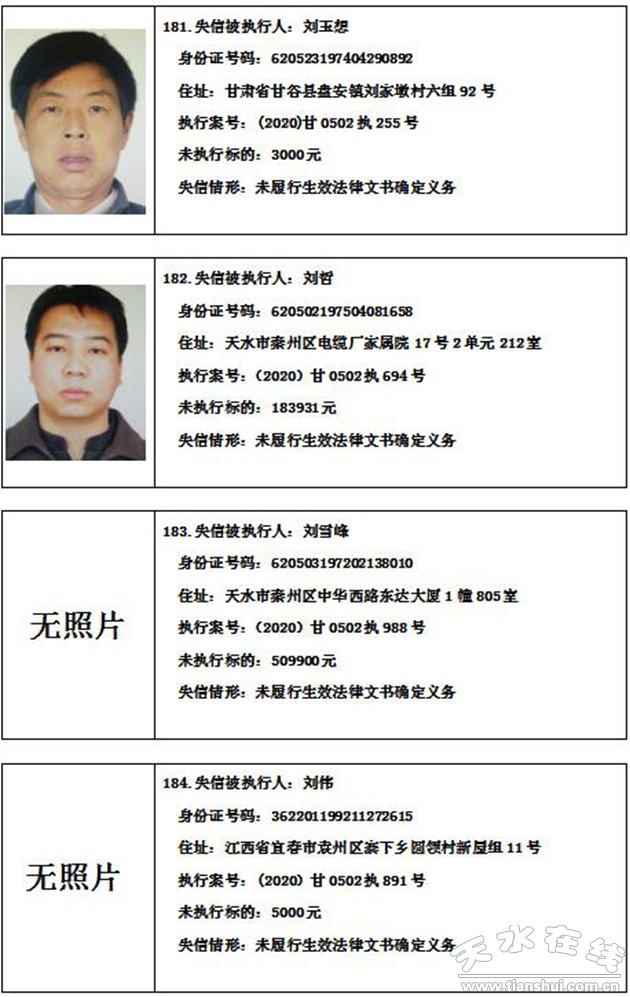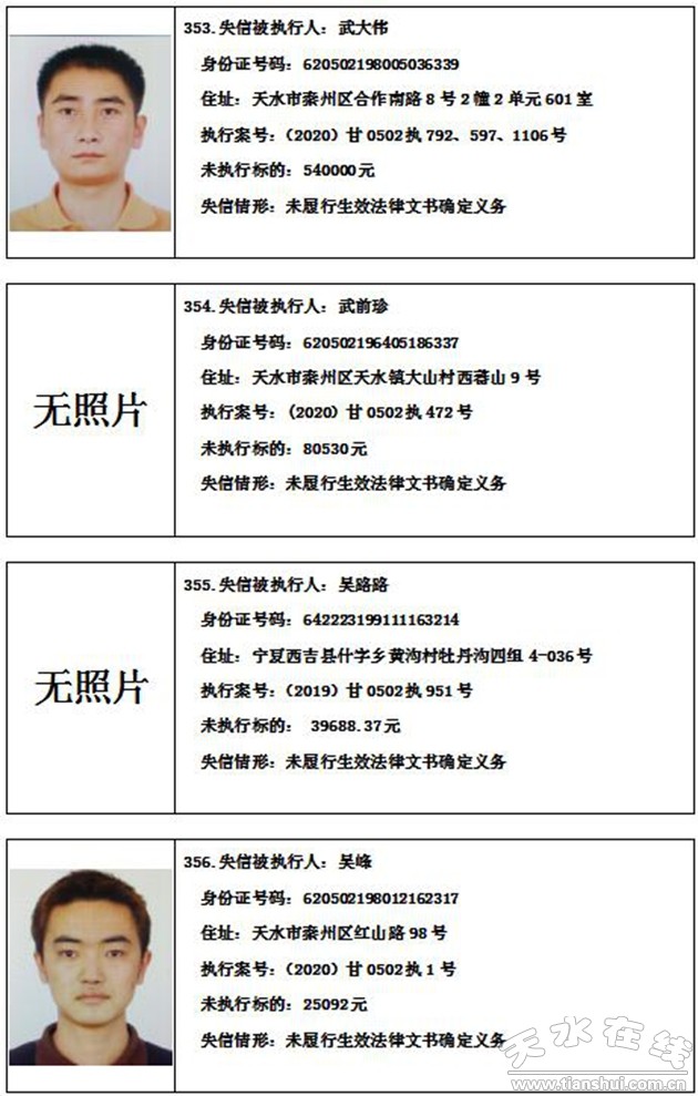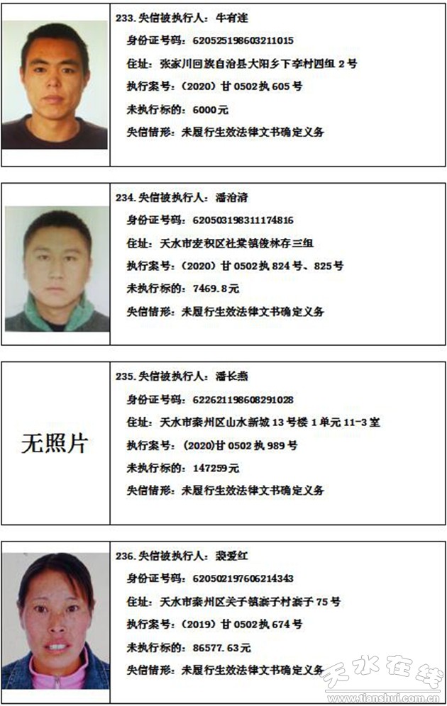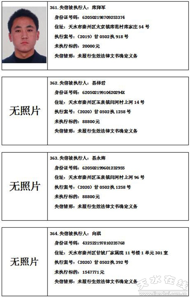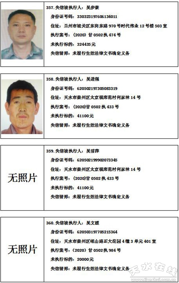 為進(jìn)一步制裁規(guī)避執(zhí)行行為,保障勝訴當(dāng)事人的合法權(quán)益,推進(jìn)社會誠信體系建設(shè),依照《中華人民共和國民事訴訟法》、《最高人民法院關(guān)于公布失信被執(zhí)行人名單信息的若干規(guī)定》等法律、司法解釋的有關(guān)規(guī)定,現(xiàn)對一批已進(jìn)入執(zhí)行程序,且尚未全部履行義務(wù)的被執(zhí)行人進(jìn)行媒體曝光,并敦促所有被執(zhí)行人自覺履行生效法律文書確定的義務(wù),通告如下: