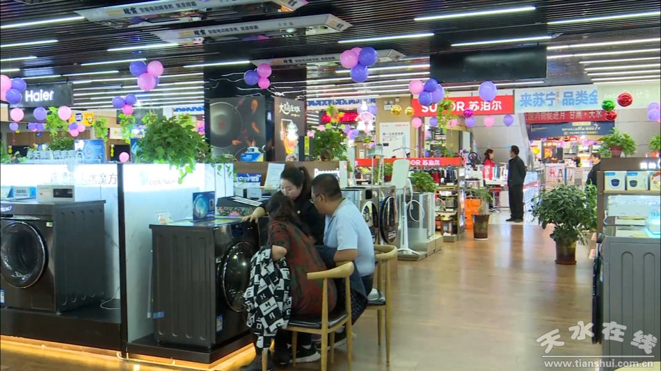 在蘇寧電器天水龍城店,各類電器琳瑯滿目,貨源充足。為了配合政府此次投放電子消費券拉動市場消費,蘇寧電器天水龍城店也推出了自己的優(yōu)惠措施,積極發(fā)揮消費券的“乘數(shù)效應(yīng)”,促進店內(nèi)經(jīng)營持續(xù)火爆。