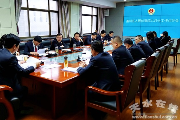 10月10日,秦州區(qū)人民檢察院召開9月份工作月點(diǎn)評會,黨組成員、各部室負(fù)責(zé)人參會,高保德檢察長主持。10月12日,召開全院大會傳達(dá)學(xué)習(xí)了相關(guān)文件和9月份工作月點(diǎn)評會會議精神。