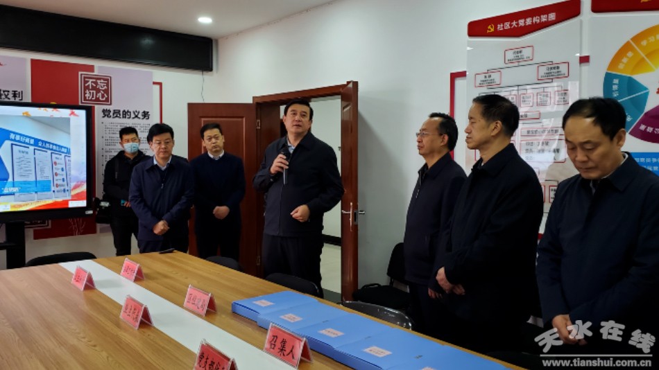 趙衛(wèi)東一行先后到秦州區(qū)西關(guān)街道聚寶盆社區(qū)、天水郡街道藉水南路社區(qū),通過實地查看,聽取匯報、觀看專題片等形式,詳細了解秦州區(qū)基層協(xié)商民主建設(shè)情況。