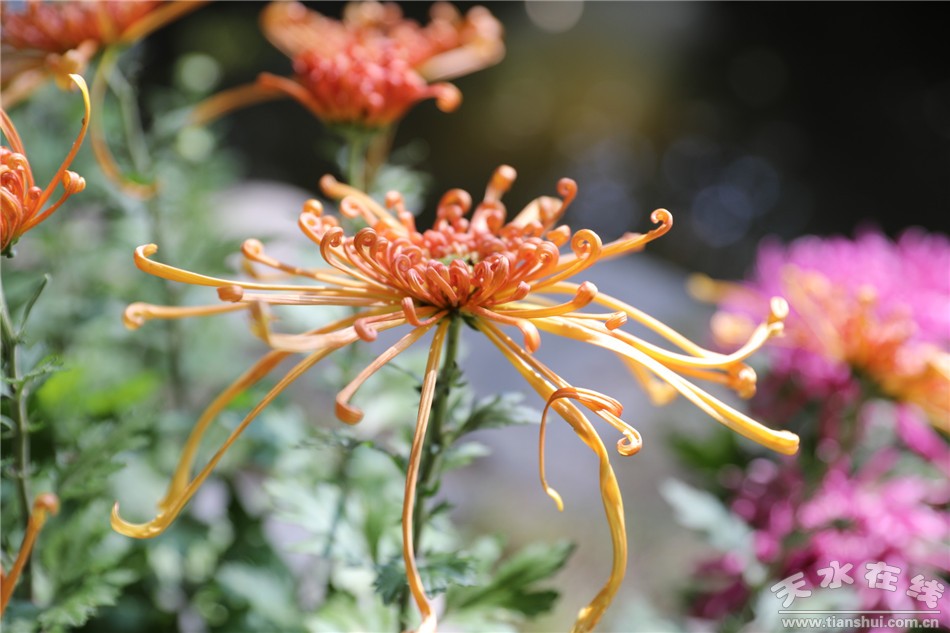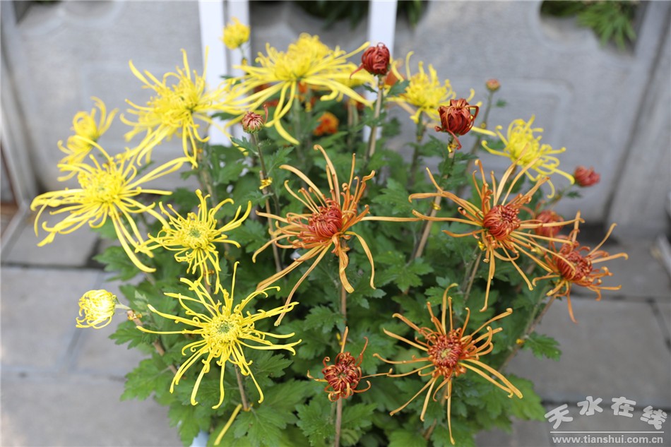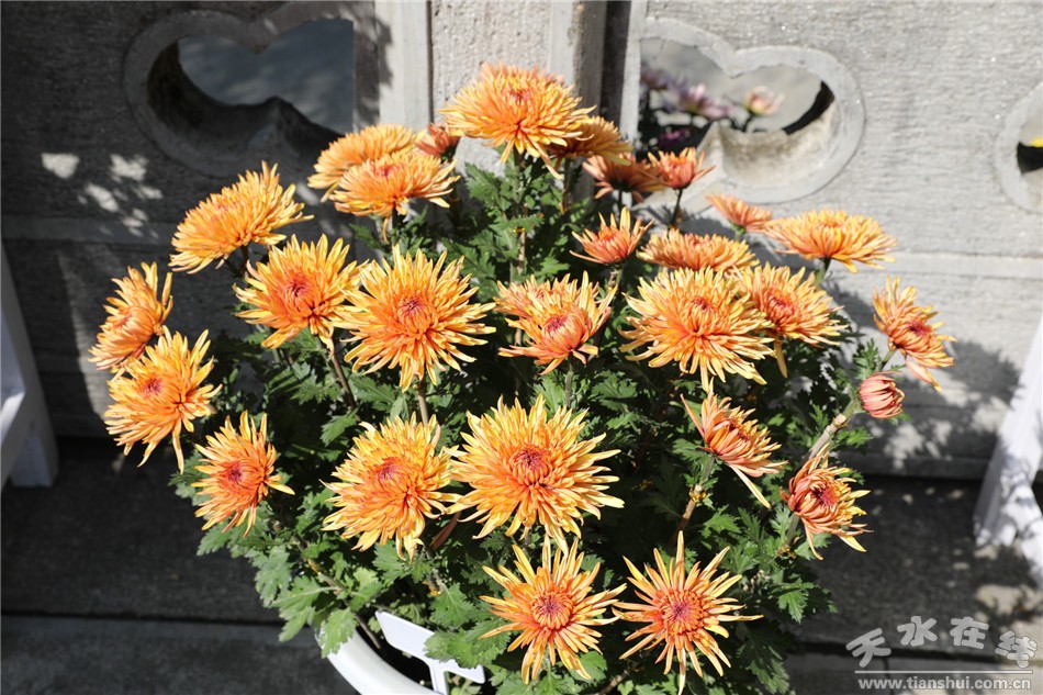 本次菊展以“遲日江山麗、菊蕊獨(dú)盈枝——讓鮮花走進(jìn)生活”為主題,意在盛邀四方賓朋共赴花季之約、共賞秋菊之美。在秋風(fēng)颯爽的時(shí)節(jié),讓菊花的香蕊融入我們生活,讓彩霞般的靚麗色彩扮美秦州的這個(gè)秋天,讓菊文化在這片沃土生根發(fā)芽。