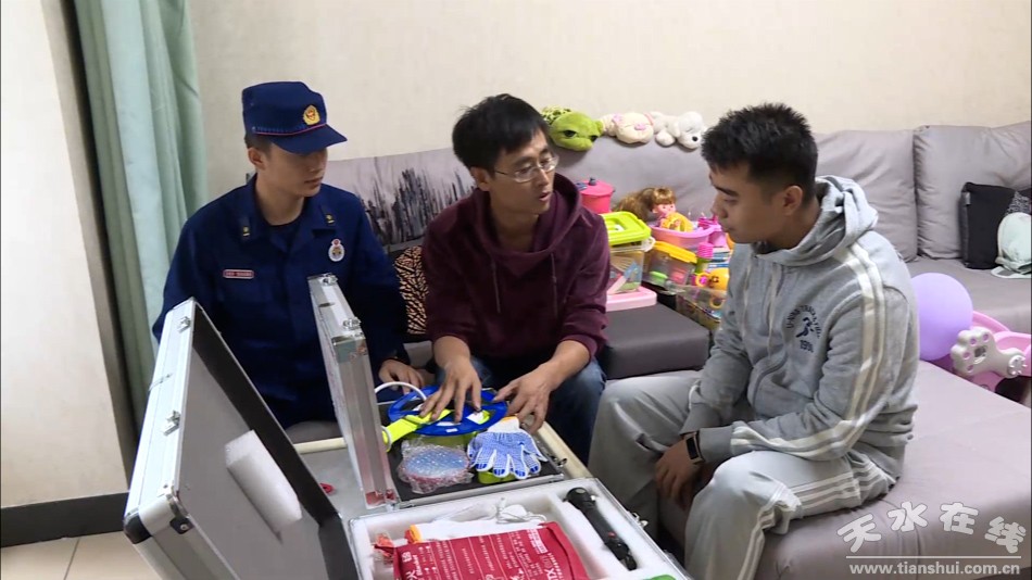 在陽(yáng)光麗景灣住宅小區(qū),記者看到天水市消防救援支隊(duì)的消防官兵和相關(guān)工作人員正在為小區(qū)住戶安裝逃生緩降器。