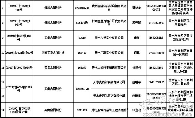 附:第十四期公布失信被執(zhí)行人名單。