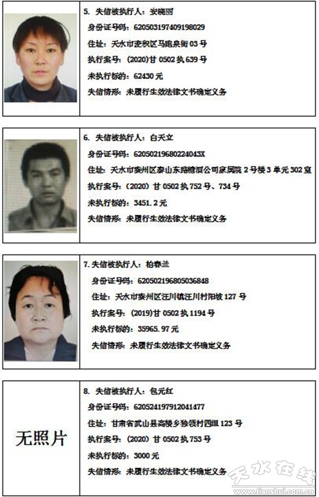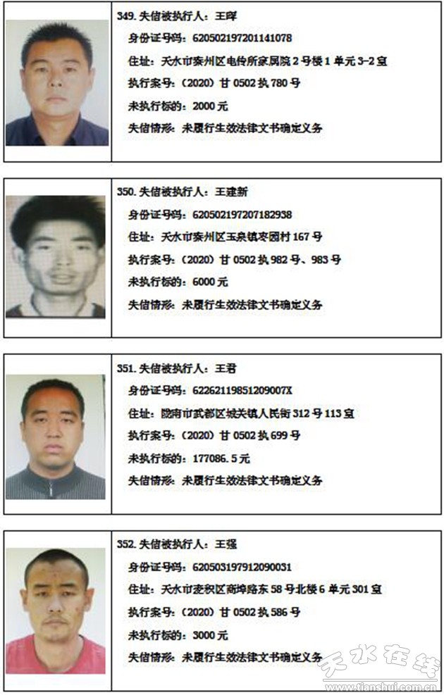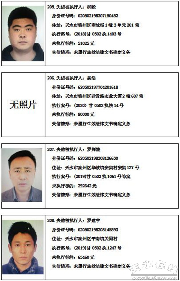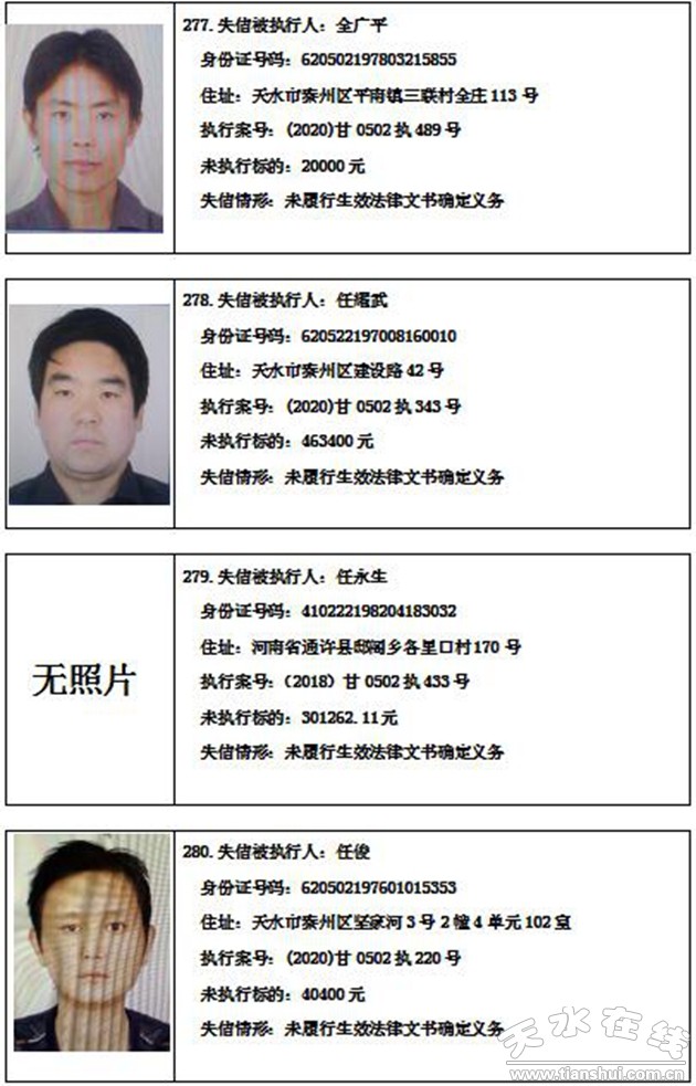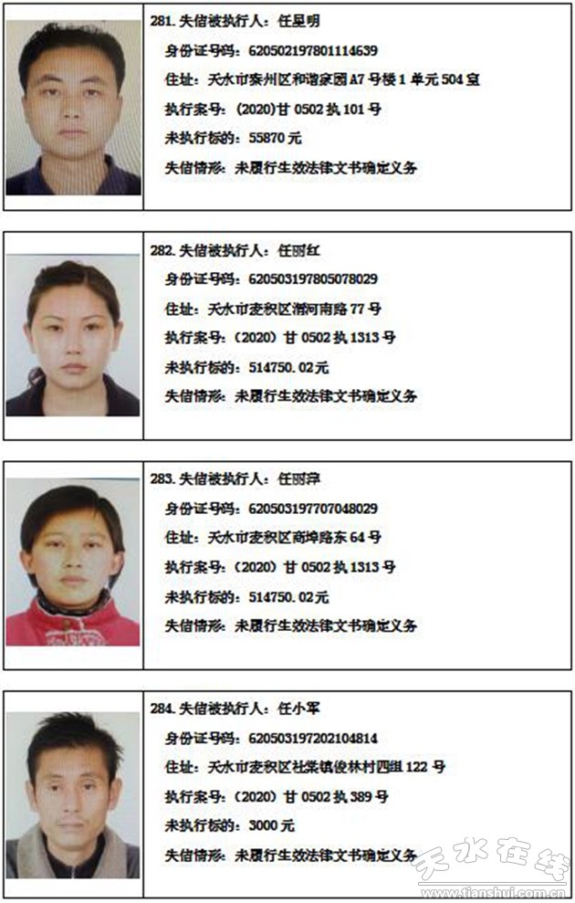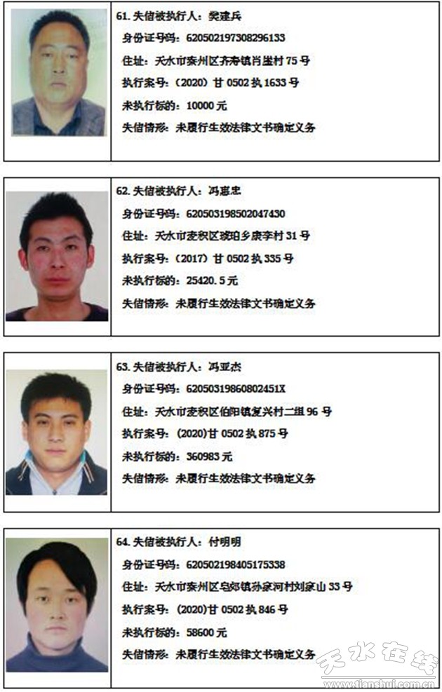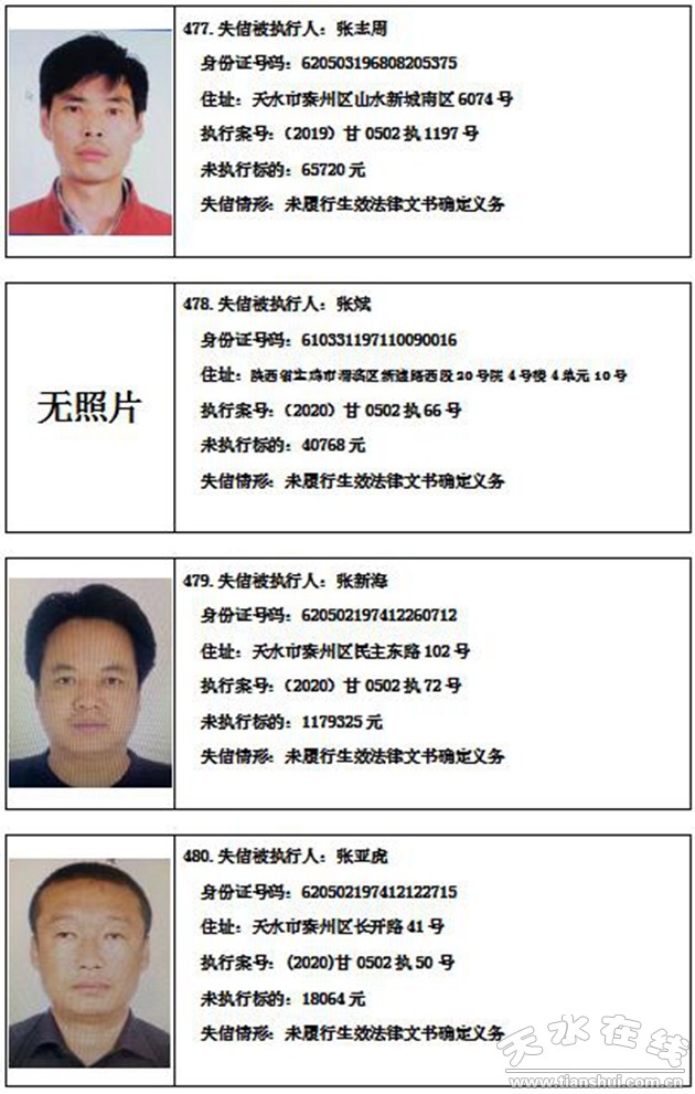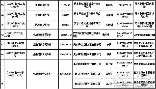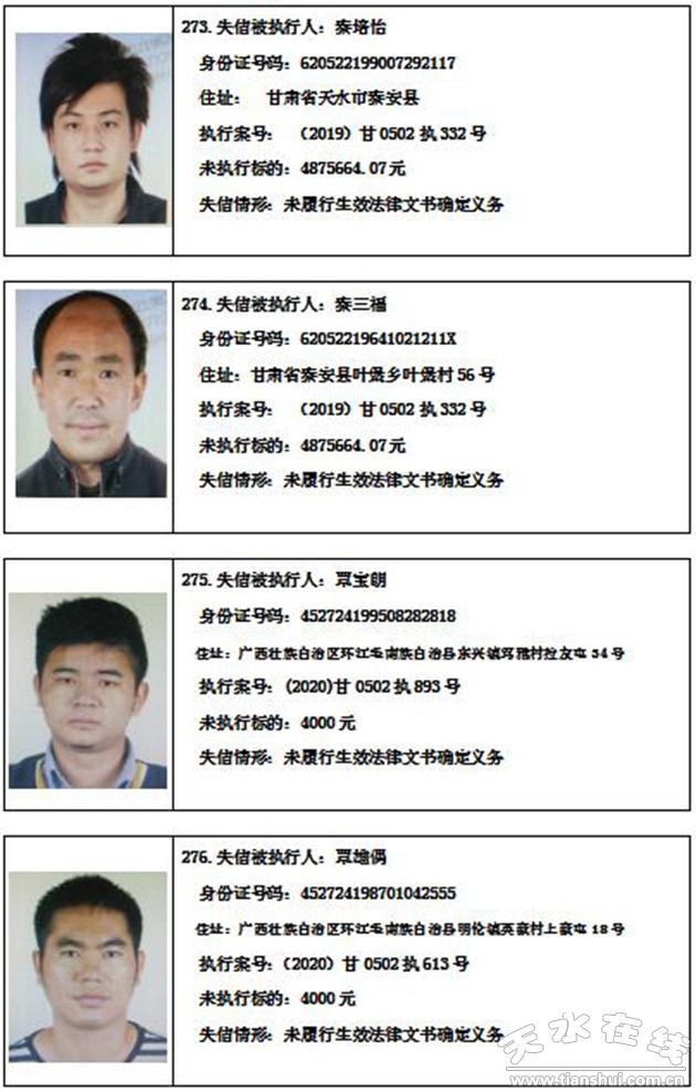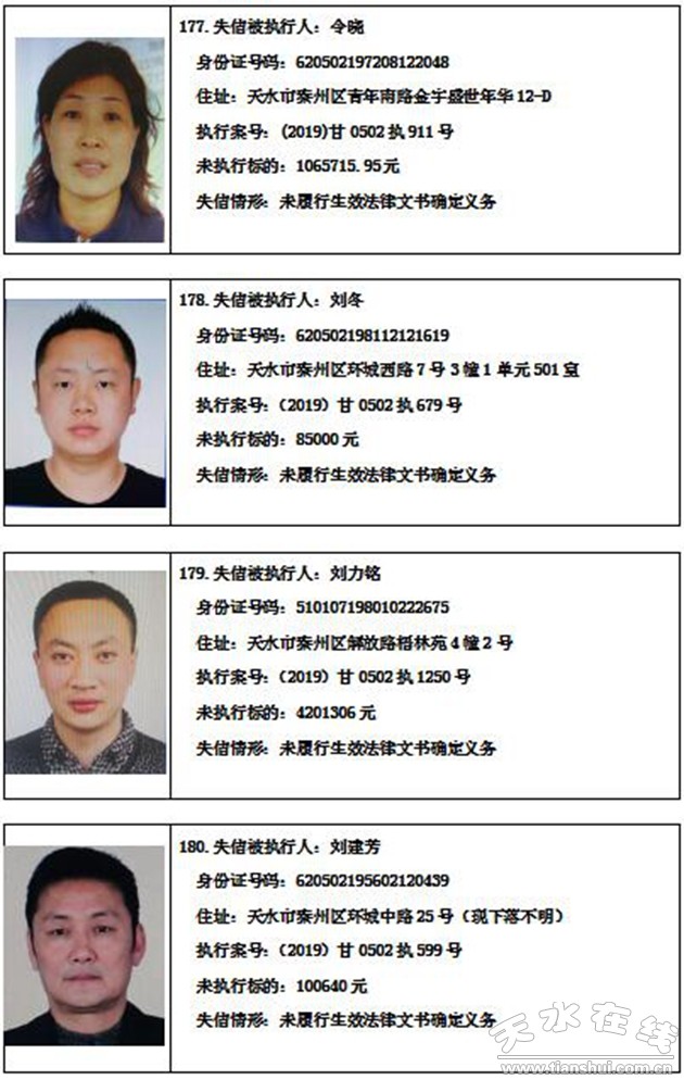 秦州區(qū)人民法院關(guān)于集中曝光失信被執(zhí)行人名單的通告