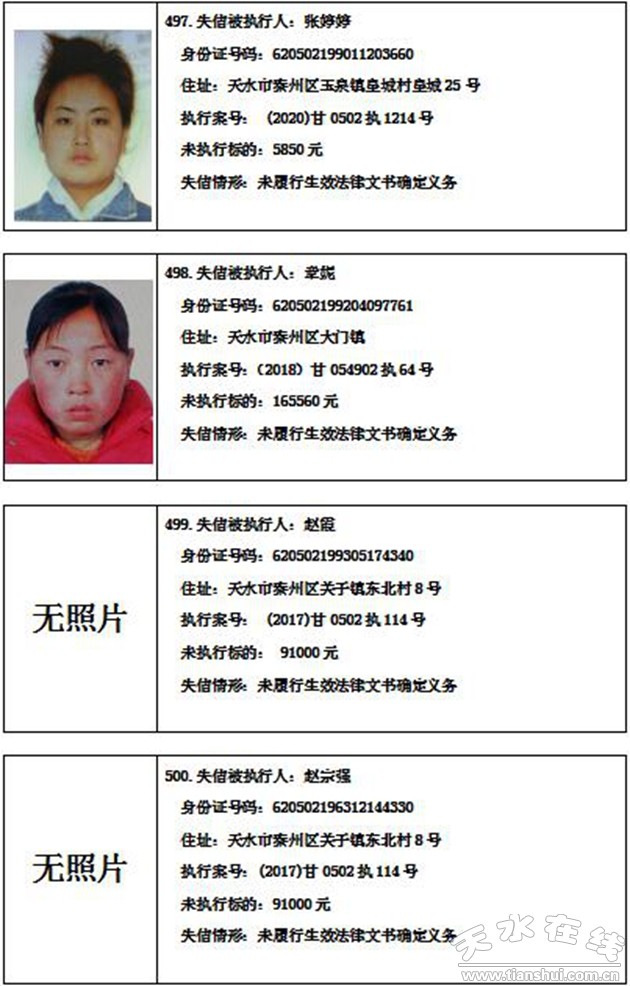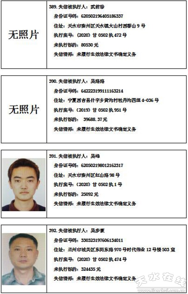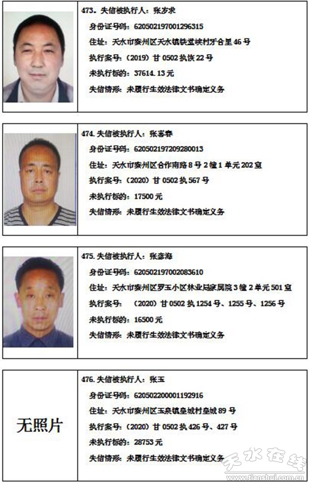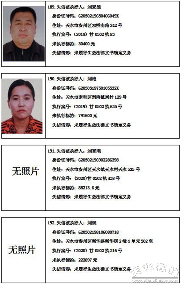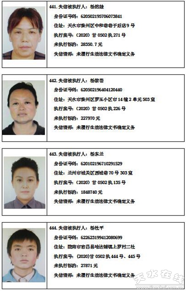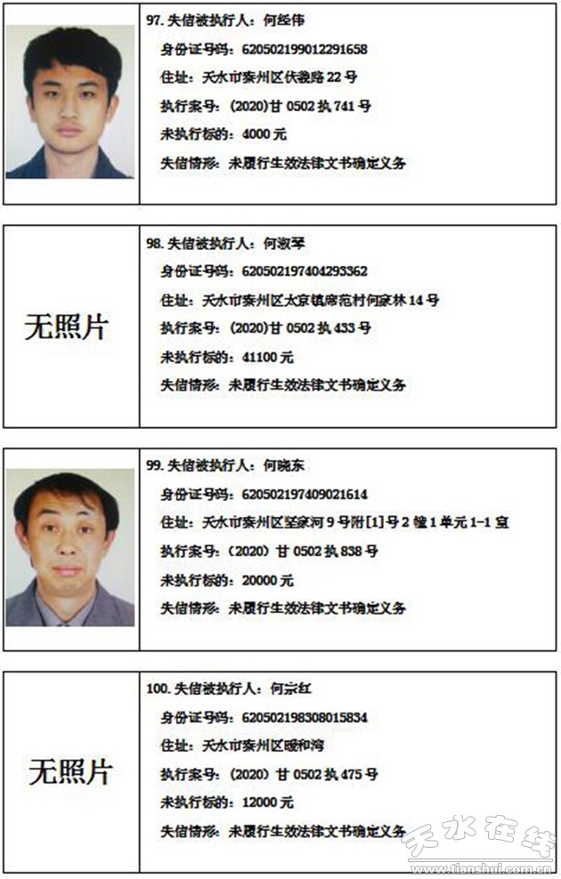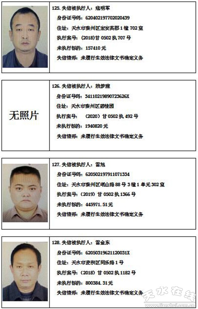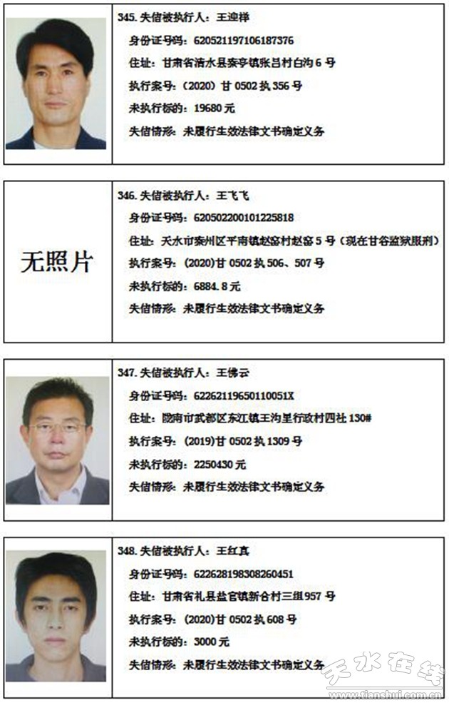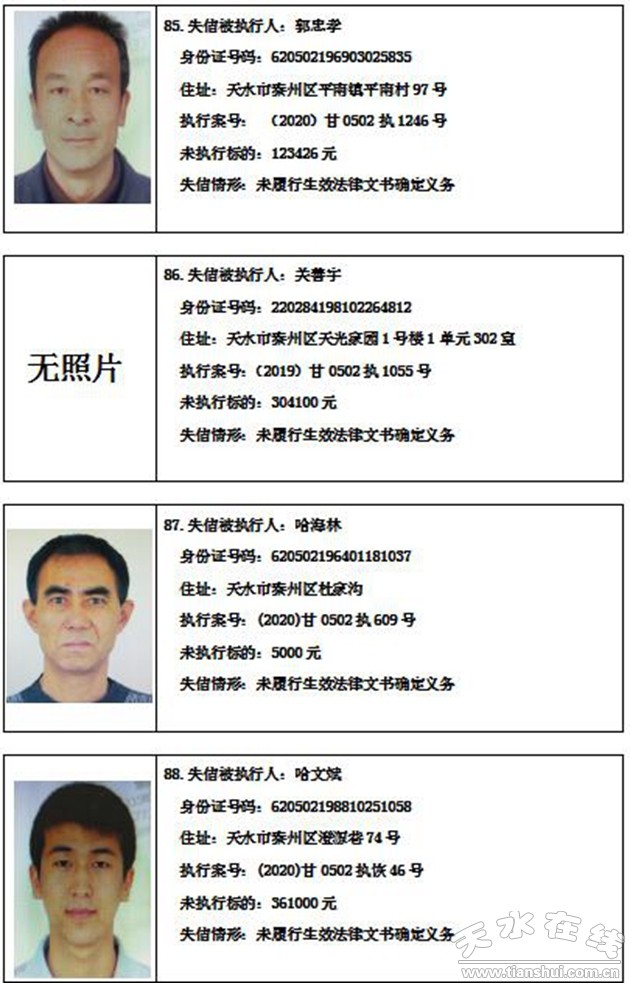 秦州區(qū)人民法院關(guān)于集中曝光失信被執(zhí)行人名單的通告