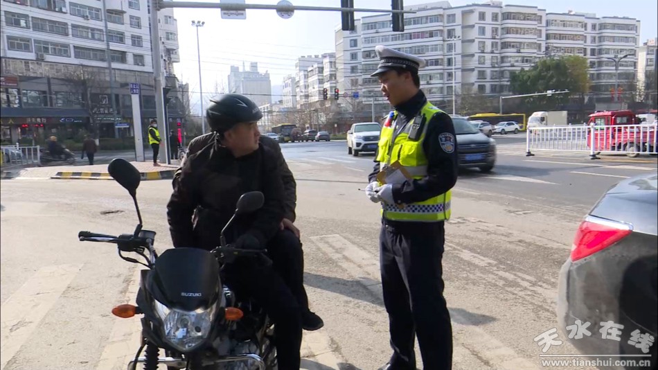 “在此提醒廣大駕駛員同志,一盔一帶,安全相伴,規(guī)范行車,安全行車。”秦州公安分局城區(qū)交警大隊二中隊民警穆昊說。