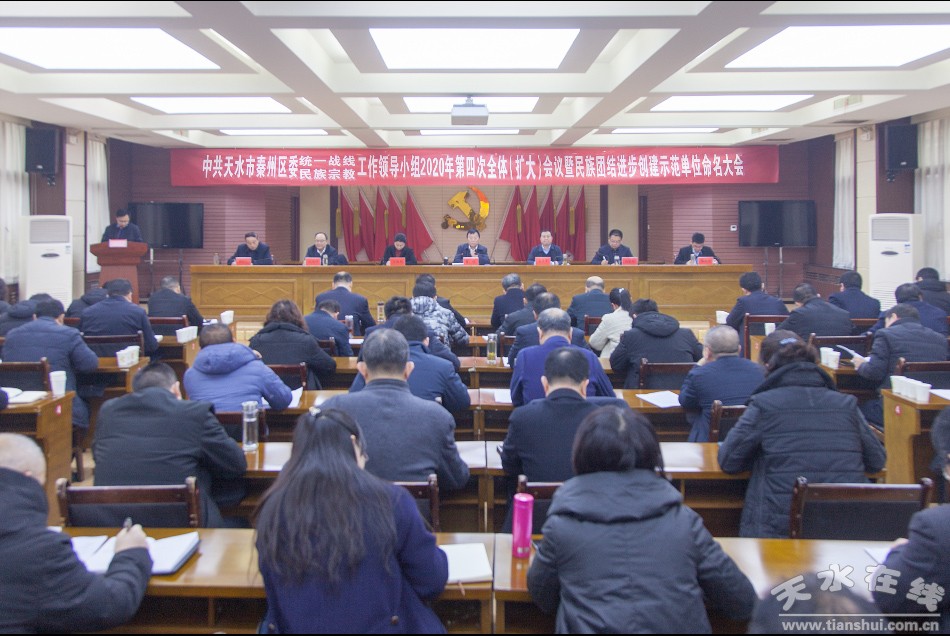 秦州區(qū)融媒體中心12月21日訊(記者 魏朝輝 楊旭 攝影 劉可)12月21日,市委常委、秦州區(qū)委書記、區(qū)委統(tǒng)戰(zhàn)工作領(lǐng)導(dǎo)小組組長(zhǎng)雷鳴主持召開區(qū)委統(tǒng)一戰(zhàn)線工作(民族宗教工作)領(lǐng)導(dǎo)小組2020年第四次全體(擴(kuò)大)會(huì)議暨民族團(tuán)結(jié)進(jìn)步創(chuàng)建示范單位命名大會(huì)。他強(qiáng)調(diào),各級(jí)各部門要提高政治站位,積極主動(dòng)作為,履行好各自工作職責(zé),促進(jìn)統(tǒng)戰(zhàn)領(lǐng)域各項(xiàng)工作上水平、上臺(tái)階,為推動(dòng)全區(qū)統(tǒng)一戰(zhàn)線事業(yè)高質(zhì)量發(fā)展而不懈努力。