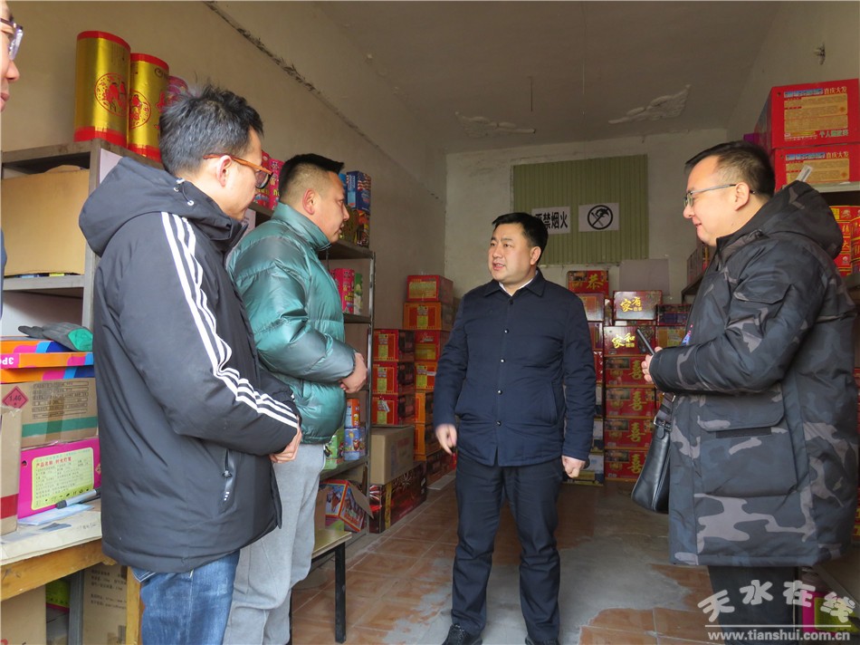 趙虎生一行先后深入中梁采石場、天翔加氣站、天水郡瀏陽花炮零售店等地實地檢查消防安全管理情況,認真聽取了各單位負責人有關元旦期間消防安全工作情況的匯報,對各單位安全疏散指示標志、安全出口設置情況、消防設施器材是否完好無損、值班人員是否在崗在位、是否制定了消防安全工作方案以及滅火疏散應急預案、消防車道是否通暢進行了詳細檢查。并針對檢查期間存在的問題,現(xiàn)場提出了整改要求。