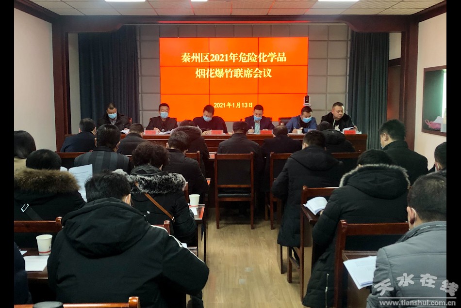 會(huì)議傳達(dá)了《秦州區(qū)開(kāi)展硝酸銨等危險(xiǎn)化學(xué)品安全風(fēng)險(xiǎn)隱患第三輪專項(xiàng)排查治理工作方案》《秦州區(qū)開(kāi)展安全生產(chǎn)大集中大排查大整治大達(dá)標(biāo)大提升“百日行動(dòng)”的通知》《天水市秦州區(qū)2021年煙花爆竹銷售旺季安全監(jiān)管及零售布點(diǎn)工作方案》。學(xué)習(xí)了《煙花爆竹零售店(點(diǎn))安全技術(shù)規(guī)范》《天水市煙花爆竹安全管理辦法》,對(duì)2020年全區(qū)危險(xiǎn)化學(xué)品和煙花爆竹領(lǐng)域安全監(jiān)管情況作出了總結(jié)。秦州區(qū)應(yīng)急管理局、公安分局、市場(chǎng)監(jiān)管局對(duì)煙花爆竹銷售旺季監(jiān)管工作進(jìn)行安排部署。