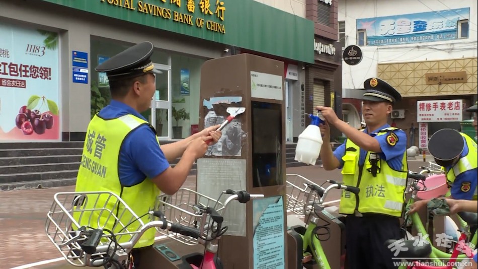 秦州區(qū)城市管理綜合執(zhí)法局大城中隊(duì)指導(dǎo)員陳帆說(shuō):“今天我們大城執(zhí)法中隊(duì)總共組織38名執(zhí)法隊(duì)員,對(duì)大眾中路和大眾北路的亂張貼、城市牛皮癬、煙頭,還有公共設(shè)施進(jìn)行了集中清理。我們?yōu)閯?chuàng)建文明城市,盡我們應(yīng)盡的責(zé)任!