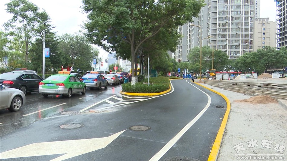 藉河北路是城區(qū)重要的主干道,是很多學(xué)生和上班族的必經(jīng)之路。長(zhǎng)期以來,右轉(zhuǎn)車輛與直行車輛在同一車道,如果遇到上下學(xué)和上下班高峰期就擁堵不堪,給途經(jīng)該路段的群眾帶來不便。為此,今年8月,秦州區(qū)住建局對(duì)這條道路實(shí)施改造,組織施工人員加班加點(diǎn)施工,將原來的道路進(jìn)行了改造,增設(shè)了右轉(zhuǎn)專用車道。