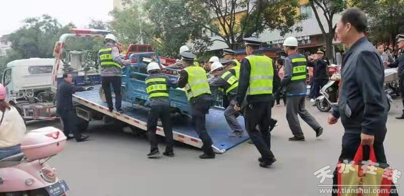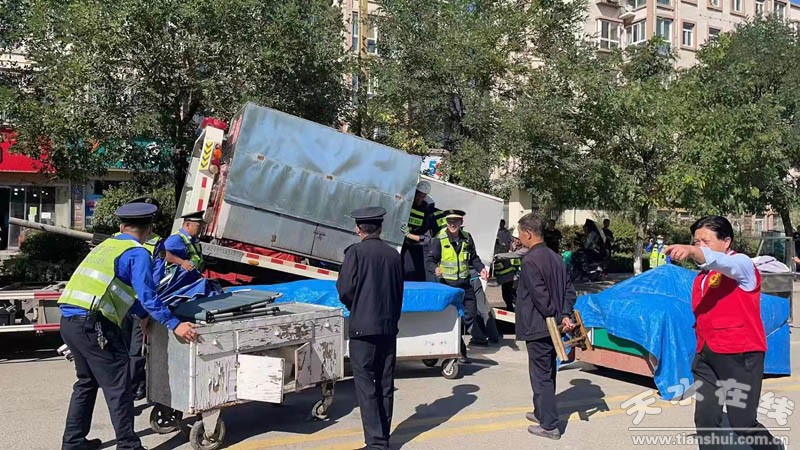 專項整治 促進度。集中整治中搶時間、促進度,對城市占道經(jīng)營進行分類監(jiān)管,對主次干道、市場、背街小巷等重點部位各類占道經(jīng)營攤點、出店經(jīng)營、沿街叫賣等行為叫停,執(zhí)法人員每天深入大街小巷,勸導(dǎo)和制止各種占道經(jīng)營行為,共開展集中整治16次,清理各類占道經(jīng)營16000余起,引導(dǎo)600余戶流動商販到指定地方規(guī)范經(jīng)營。傾力配合市場建設(shè)中心做好市場治理工作,對岷山市場亂搭建進行了整治,連夜對堅家河馬路市場內(nèi)占用人行道私自搭建的36處構(gòu)筑物進行了全面拆除,共拆除面積約1850平方米,拆除天水市第一人民醫(yī)院后門彩鋼房面積約632平方米。傾倒建筑垃圾、清除雜物1222余噸,175車/次。