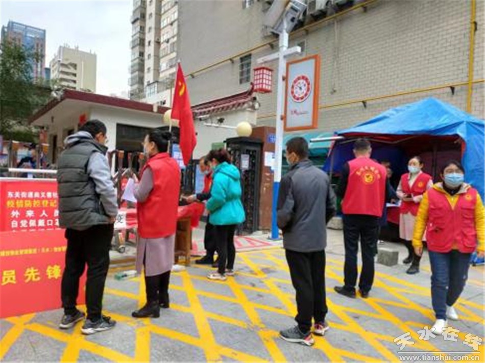 東關(guān)街道組織人員在轄區(qū)51個疫情防控值守點,循環(huán)播放《天水市聯(lián)防聯(lián)控辦關(guān)于進一步加強疫情防控工作的緊急通知》《秦州區(qū)疫情防控第29號通告》,張貼、發(fā)放《致東關(guān)街道轄區(qū)單位、廣大居民群眾的一封信》,全面提升居民群眾疫情防控意識;對轄區(qū)商鋪、小區(qū)、住戶等進行入戶排摸,全面排摸掌握全轄區(qū)密接、次密接、時空伴隨等人員信息,并引導(dǎo)群眾不信謠、不傳謠、不造謠,營造全民防疫宣傳氛圍。