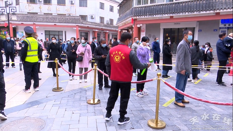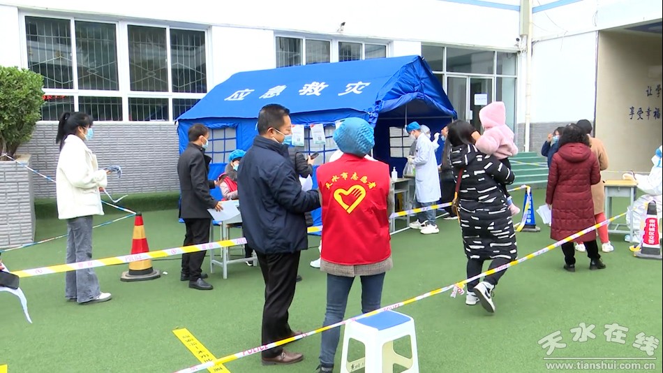 記者在秦州區(qū)公園小學(xué)核酸檢測(cè)采樣點(diǎn)與進(jìn)步巷社區(qū)東步行街核酸檢測(cè)采樣點(diǎn)看到,一個(gè)個(gè)身著紅色馬甲的志愿者們,正在為前來(lái)采樣的居民做登記,查驗(yàn)健康碼,提醒帶口罩、保持安全距離等注意事項(xiàng),在他們的協(xié)助下采樣現(xiàn)場(chǎng)井然有序,忙而不亂。大規(guī)模核酸檢測(cè)采樣工作正在快速、安全、高效地進(jìn)行。