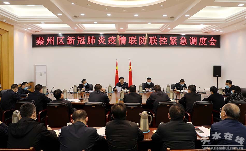 秦州區(qū)融媒體中心10月26日訊(記者 邵千)10月25日,秦州區(qū)召開新冠肺炎疫情聯(lián)防聯(lián)控緊急調(diào)度會,對進一步做好疫情防控工作、嚴格落實各項防控措施進行了詳細安排部署。市委常委、區(qū)委書記、區(qū)新冠肺炎疫情聯(lián)防聯(lián)控領(lǐng)導(dǎo)小組組長王東紅,區(qū)委副書記、區(qū)長、區(qū)新冠肺炎疫情聯(lián)防聯(lián)控領(lǐng)導(dǎo)小組組長孟曉龍出席會議并講話。王濤、張奎喜、王啟峰、何煒巍、溫建平、張維有、李亮、劉曉宏、胡小云等區(qū)四大組織領(lǐng)導(dǎo)參加會議。