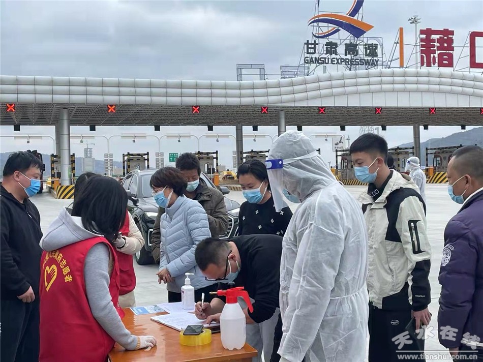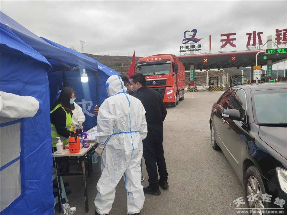天水中心衛(wèi)生院干部職工在天水鎮(zhèn)高速出口與交警一起,對(duì)過往車輛人員測(cè)溫、登記、查碼,切實(shí)做到不漏一車、不漏一人。