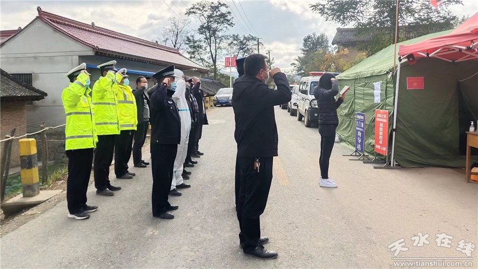秦州區(qū)融媒體中心10月28日訊 臨時黨支部,黨心“不臨時”、作用“不臨時”、管控“不臨時”。為更好打好打贏疫情防控阻擊戰(zhàn),10月28日,秦州區(qū)大門鎮(zhèn)在疫情防控工作最為關(guān)鍵時期和最為重要點位,及時成立大門鎮(zhèn)新冠肺炎疫情防控郭陳村、田于村執(zhí)勤點兩個臨時黨支部,充分發(fā)揮黨組織戰(zhàn)斗堡壘和黨員先鋒模范作用,使黨旗在疫情防控第一線高高飄揚,讓“我是黨員我先上”成為抗疫一線響亮的口號!拔抑驹讣尤胫袊伯a(chǎn)黨,擁護黨的綱領(lǐng),遵守黨的章程,履行黨員義務(wù)……”在臨時黨支部成立儀式上,全體支部黨員面向黨旗、右手舉拳,重溫入黨誓詞,紛紛表示將積極投身疫情防控一線,全力以赴為全鎮(zhèn)群眾放好哨、站好崗。(供稿 大門鎮(zhèn)/編輯 楊旭 審核 辛智翔)