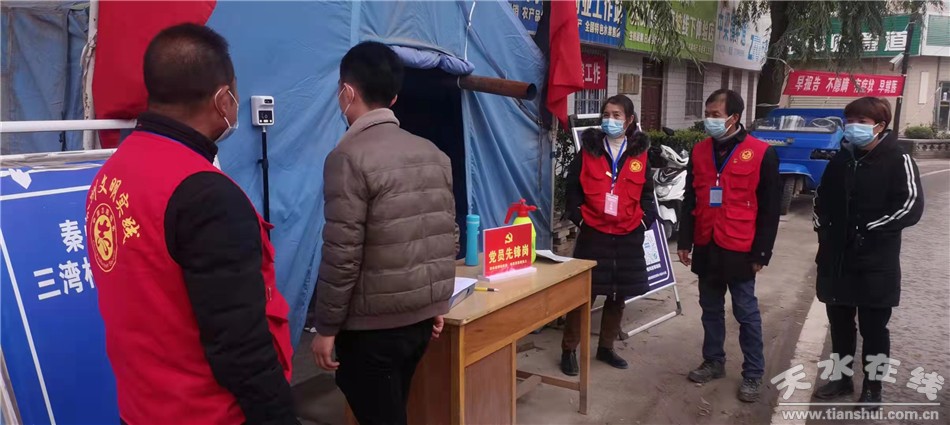 黨員先行展風(fēng)采,行動迅速勇?lián)?zé)。在30個疫情防控卡點(diǎn),穿紅馬甲的機(jī)關(guān)、鎮(zhèn)屬單位、村組黨員干部們自覺扛起責(zé)任,24小時輪流值班值守,換人不換崗,嚴(yán)格進(jìn)出車輛人員的測溫、登記、查碼,確保不漏一車、不漏一人,用“黨旗紅”織密“防疫網(wǎng)”。