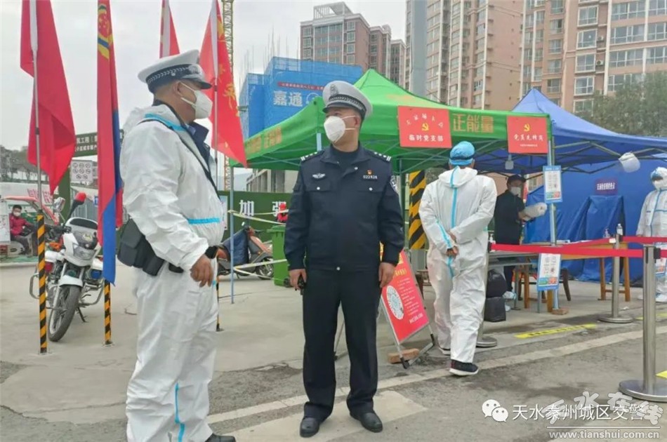新一輪疫情發(fā)生以來(lái),秦州公安分局城區(qū)交警堅(jiān)決扛起疫情防控責(zé)任,在上級(jí)部門的堅(jiān)強(qiáng)領(lǐng)導(dǎo)下,迅速激活疫情防控應(yīng)急響應(yīng)工作機(jī)制,全力以赴投入戰(zhàn)疫情、防風(fēng)險(xiǎn)、保安全、護(hù)穩(wěn)定各項(xiàng)工作,為打贏疫情防控阻擊戰(zhàn)營(yíng)造安全暢通的道路交通環(huán)境。 疫情就是命令,防控就是責(zé)任。面對(duì)突如其來(lái)的疫情,秦州公安分局城區(qū)交警“逆行”而上,大隊(duì)啟動(dòng)24小時(shí)勤務(wù)模式,全天候值守檢查點(diǎn),全力協(xié)助配合交通、衛(wèi)生檢疫部門、醫(yī)護(hù)人員開(kāi)展疫情防控工作。并引導(dǎo)車輛有序進(jìn)行登記,提醒駕乘人員佩戴口罩進(jìn)行“掃碼”、出示健康碼、核酸證明,隨時(shí)處置重大警情和突發(fā)事件,疫情不散、警察不退,把疫情防控的大旗扛在肩上,筑起疫情防控的鐵壁銅墻,切實(shí)做好疫情“防輸入、防輸出、防擴(kuò)散”工作,堅(jiān)決構(gòu)筑防控嚴(yán)密防線。