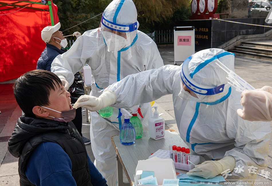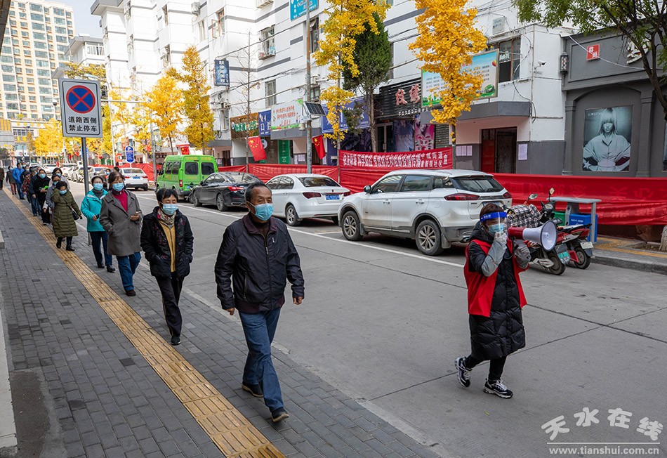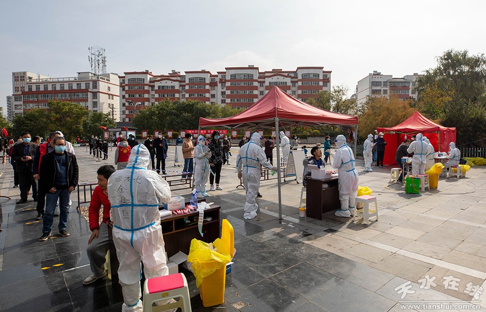 11月2日8時起,秦州區(qū)在七個街道及玉泉鎮(zhèn)開展第四輪大規(guī)模核酸檢測。本輪核酸檢測以社區(qū)網格(村民小組)為基本單元,采取“采樣小組移動,居民群眾不流動”的方式,分片區(qū)、分樓棟、分單元、分時段組織進行,嚴格控制排隊候檢人數。