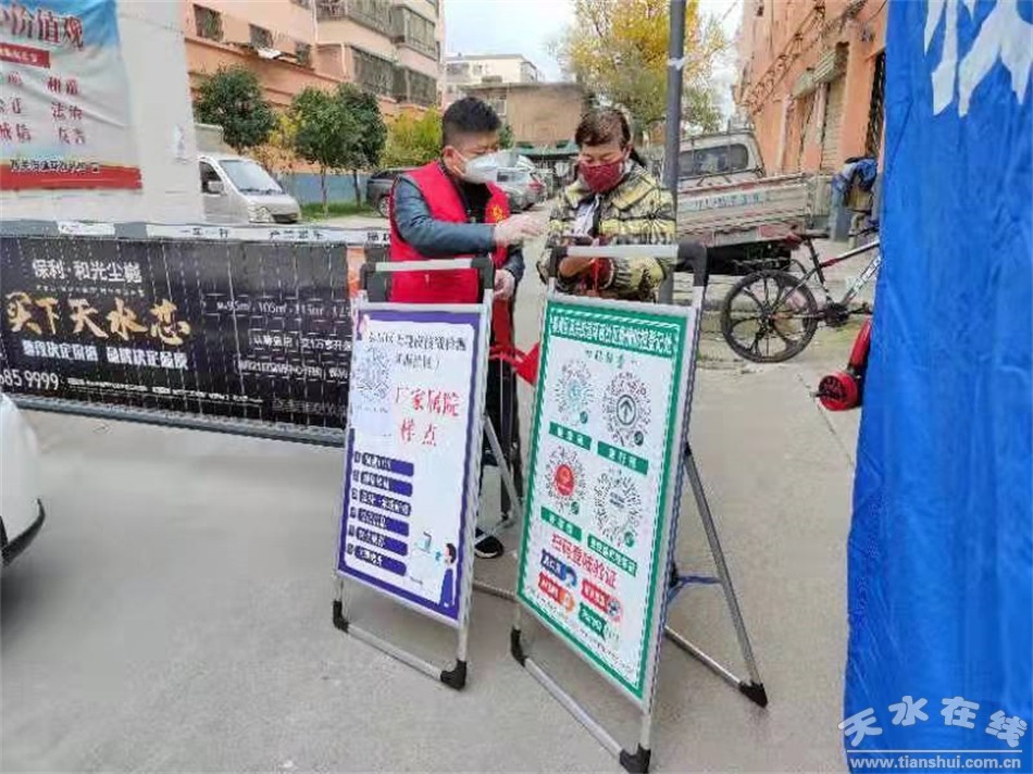 疫情面前,敢于擔(dān)當(dāng)。秦州區(qū)工信局全體干部始終繃緊疫情防控這根弦,嚴(yán)格執(zhí)行24小時(shí)值班值守制度,對(duì)出入人員嚴(yán)格審核健康碼,認(rèn)真做好信息登記,做到了區(qū)域封閉、小區(qū)管控、人不外出、服務(wù)上門。為積極配合核酸檢測(cè)工作,天光小區(qū)值守人員在每棟樓下通知以后,又進(jìn)樓道一層一層通知,對(duì)一些年齡大、耳朵不好的老人家建立信息,電話專門通知。崔家巷路口三無小區(qū)值守人員拉起了隔離線、搬來了桌子椅子、搭起了帳篷,全面加強(qiáng)對(duì)三無小區(qū)疫情管控,認(rèn)真落實(shí)小區(qū)出入人員排查、登記、測(cè)溫、勸返、掃碼、小區(qū)消殺等措施。