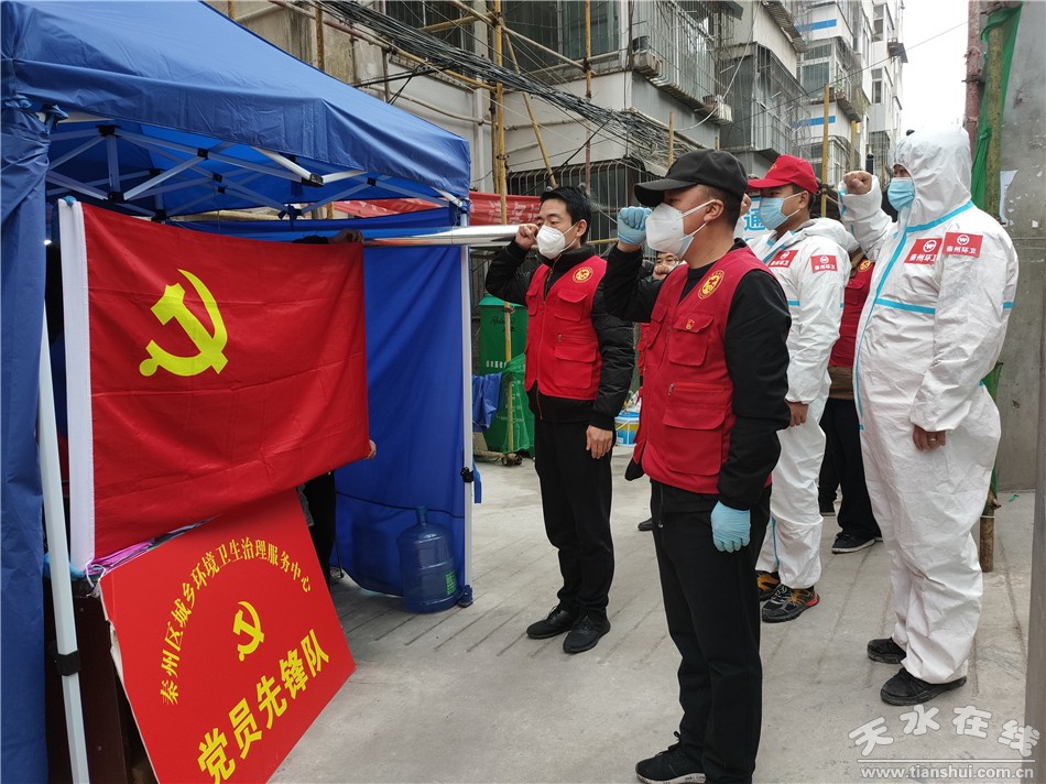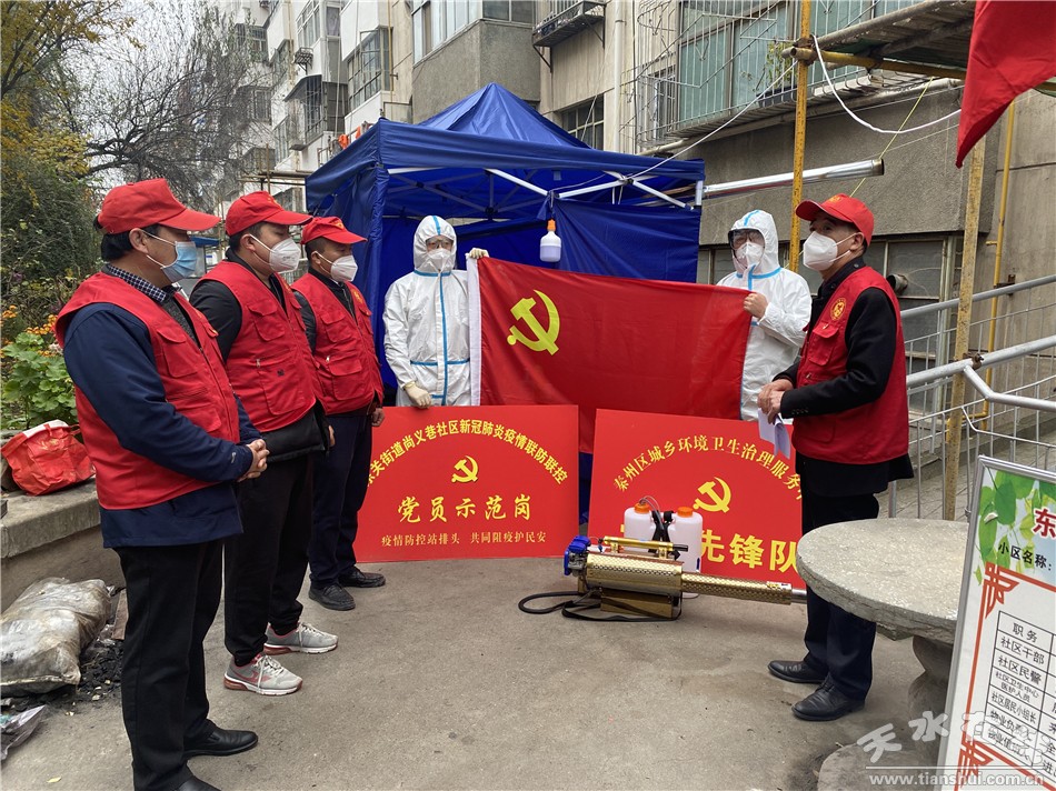 秦州區(qū)融媒體中心11月6日訊 面臨當(dāng)前疫情防控的嚴(yán)峻形勢,秦州區(qū)城鄉(xiāng)環(huán)衛(wèi)治理服務(wù)中心積極響應(yīng)上級黨組織的號召,在8個包保值守小區(qū)成立臨時黨小組,充分發(fā)揮黨員先鋒模范作用,讓黨旗在“疫”線高高飄揚(yáng)。在臨時黨小組的帶領(lǐng)下,黨員干部100余名第一時間參與社區(qū)參與疫情防控工作,明確工作職責(zé),理清工作思路,統(tǒng)籌安排力量,全力當(dāng)好疫情防控的“宣傳員”、重點(diǎn)人群的“排查員”、核酸檢測的“服務(wù)員”,積極參與社區(qū)卡口值守、重點(diǎn)人員排查、所有居民核酸檢測情況摸排和秩序保障等工作,堅(jiān)決守牢疫情防控“神經(jīng)末梢”。組織黨員干部沖鋒在疫情防控的小區(qū)值守點(diǎn)、城市重點(diǎn)公共區(qū)域消殺點(diǎn)等疫情防控的一線前沿,24小時輪班值守在小區(qū)卡點(diǎn),為進(jìn)出小區(qū)的人員登記測溫,對小區(qū)內(nèi)的公共空間、樓道內(nèi)外開展消殺,信守黨員承諾,堅(jiān)決守護(hù)小區(qū)居民的安全和健康。真正做到“哪里需要哪里就有黨組織,哪里危急哪里就有黨組織。”在最短時間內(nèi)凝聚合力、激發(fā)活力,為疫情防控各項(xiàng)工作有序開展提供堅(jiān)強(qiáng)組織保障。