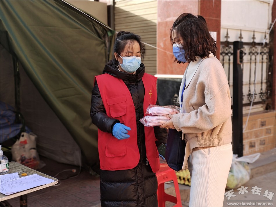 自秦州區(qū)開(kāi)展大規(guī)模核酸檢測(cè)以來(lái),朱秀娟與社區(qū)工作人員每天早上六點(diǎn)半便開(kāi)始布置場(chǎng)地,組織居民開(kāi)展核酸檢測(cè),組織志愿者維持秩序,每天都要忙到半夜才能收工。 第四輪全員核酸檢測(cè)結(jié)束時(shí)已到凌晨一點(diǎn)多,就在朱秀娟和社區(qū)干部打算回家時(shí),接到上級(jí)緊急通知稱下一輪核酸檢測(cè)要增加醫(yī)務(wù)人員和核酸檢測(cè)臺(tái)數(shù),需要連夜布置場(chǎng)地。朱秀娟便又連夜組織大家搭帳篷、拉桌子、拉警戒線等,一切收拾就緒已到了三點(diǎn)多,她只在辦公室休息了兩個(gè)小時(shí),六點(diǎn)起來(lái)又為新一輪核酸檢測(cè)做準(zhǔn)備,開(kāi)始了她一整天的忙碌!罢(qǐng)大家保持一米線距離,提前準(zhǔn)備好健康碼”從第一次核酸檢測(cè)以來(lái),這是朱秀娟說(shuō)得最多的話,也正因?yàn)榇耍纳ぷ訌囊婚_(kāi)始便喊沙啞了。