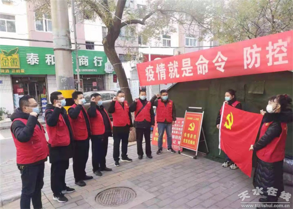 活動(dòng)中,在領(lǐng)誓人的帶領(lǐng)下,全體黨員干部面向黨旗,舉起右拳,莊嚴(yán)宣誓,進(jìn)一步堅(jiān)定永遠(yuǎn)忠于黨、永遠(yuǎn)跟黨走的信心和決心,汲取不斷砥礪奮進(jìn)的精神力量。活動(dòng)要求,全體黨員要亮明身份、沖在一線,做好“戰(zhàn)斗員”“服務(wù)員”“監(jiān)督員”“宣傳員”“聯(lián)絡(luò)員”,24小時(shí)做好小區(qū)、重點(diǎn)任務(wù)區(qū)值班值守,嚴(yán)格落實(shí)值守點(diǎn)測(cè)溫、驗(yàn)碼、查證,登記等“四必”措施。