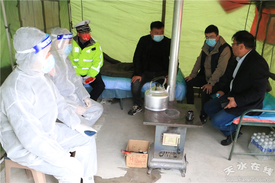 “疫”線堅守,盡顯擔(dān)當(dāng)。為守好外防輸入的“第一道防線”,藉口鎮(zhèn)在310國道五十鋪段、天定高速藉口出口、鄭集寨農(nóng)貿(mào)市場設(shè)立3處鎮(zhèn)級疫情聯(lián)防聯(lián)控執(zhí)勤點,組建“志愿紅+天使白+警察藍(lán)”執(zhí)勤隊伍,對來往人員進(jìn)行“兩碼”查驗、信息登記、體溫測量,同時在各村設(shè)立村級疫情聯(lián)防聯(lián)控執(zhí)勤點52處,各卡點嚴(yán)格落實登記、測溫、掃碼、消殺“四必”管理要求,確保疫情監(jiān)測“滴水不漏”、疫情防控“萬無一失”。在全鎮(zhèn)各處執(zhí)勤卡點,無論陰晴雨雪,不分白天黑夜,黨員干部們始終堅守一線,他們冒著迎面風(fēng)雪,頂著刺骨寒風(fēng),24小時執(zhí)著堅守,以嚴(yán)實、務(wù)實、扎實的作風(fēng),守護著外方輸入的“首道關(guān)口”,筑起了聯(lián)防聯(lián)控、群防群控的“鋼鐵長城”。