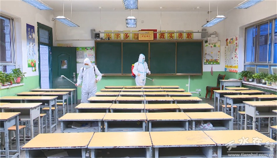 天水市育生中學(xué)副校長邢勇鴻說:“從本次線上教學(xué)以來,我們每天安排專人上午和下午對全校的環(huán)境進行一次消殺,包括樓梯、樓道,教室,尤其是人員有可能經(jīng)過的校門口附近,還有學(xué)校所有的境,我們都進行一次徹底的消殺,確保咱們校園是安全的,我們隨時迎接線下教學(xué)的開展。”