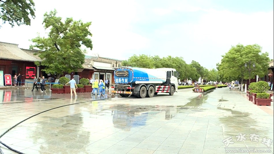 記者在伏羲廣場(chǎng)看到,“機(jī)械保潔+人工保潔”無(wú)縫銜接,灑水車和掃地車高密度疊加作業(yè),對(duì)路面進(jìn)行全面高質(zhì)量機(jī)掃沖洗,保潔人員對(duì)道路護(hù)欄周邊和綠化帶加強(qiáng)不間斷巡回?fù)焓,清理垃圾死角,?duì)城區(qū)果皮箱、煙頭收集器進(jìn)行定時(shí)清掏,確保垃圾不冒尖、不外溢。