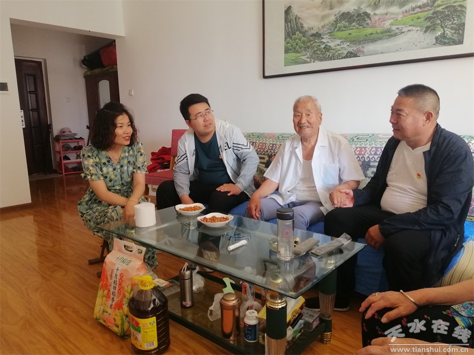 6月29日,七里墩街道五里鋪社區(qū)聯(lián)合共建單位市人防辦、市商務(wù)局、甘肅東部分揀中心走訪慰問了小區(qū)黨支部老黨員、困難黨員,為他們送去組織的關(guān)懷和節(jié)日祝福。慰問組一行首先來到了老黨員劉新考家中。劉老今年92歲高齡,也是有著61年黨齡的老黨員,大家詳細詢問其家庭和生活狀況,囑咐他要注意身體健康,并對他們?yōu)辄h和人民的事業(yè)做出的貢獻表示感謝,希望他們在保重身體的前提下,能夠一如既往地發(fā)揮老黨員的先鋒模范作用,繼續(xù)為黨奉獻余熱。隨后還慰問了困難黨員安定國、謝振華、馬金善等。