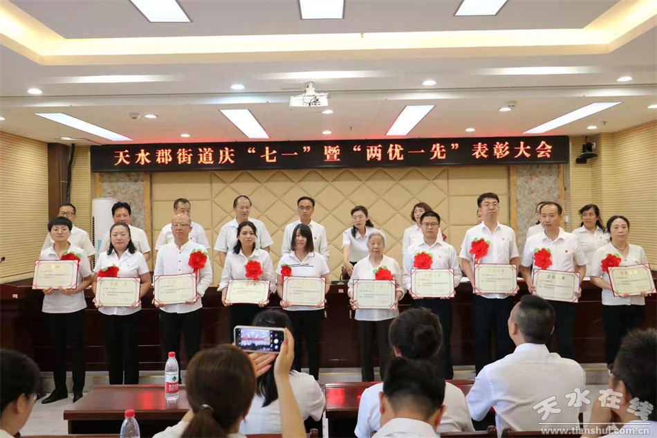 6月30日下午,天水郡街道召開慶“七一”暨“兩優(yōu)一先”表彰大會。大會在雄壯的國歌聲中拉開帷幕,全體黨員齊唱國歌,重溫入黨誓詞。會議宣讀了《中共天水市秦州區(qū)天水郡街道工作委員會關(guān)于表彰天水市秦州區(qū)天水郡街道優(yōu)秀黨員、優(yōu)秀黨務(wù)工作者和先進黨組織的決定》,表彰了20名優(yōu)秀黨員、10名優(yōu)秀黨務(wù)工作者和10個先進黨組織,優(yōu)秀黨員、優(yōu)秀黨務(wù)工作者和先進黨組織代表分別作了發(fā)言。