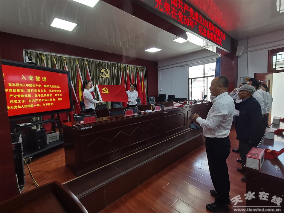 日前,牡丹鎮(zhèn)召開慶祝建黨101周年表彰大會暨“光榮在黨50年”紀(jì)念章頒發(fā)儀式。會上,全體黨員重溫入黨誓詞,對優(yōu)秀共產(chǎn)黨員、優(yōu)秀黨務(wù)工作者、先進(jìn)基層黨組織進(jìn)行了表彰,并向困難黨員發(fā)放慰問金。同時為“光榮在黨50年”老黨員頒發(fā)紀(jì)念章。會議指出,“光榮在黨50年”紀(jì)念章的頒發(fā),是對老黨員始終對黨忠誠、為黨奉獻(xiàn)的一種肯定,也是對老黨員不忘初心、牢記使命的一種致敬。廣大黨員干部要向老黨員學(xué)習(xí)、向老黨員看齊,不斷強(qiáng)化黨性修養(yǎng),努力做好本職工作。
