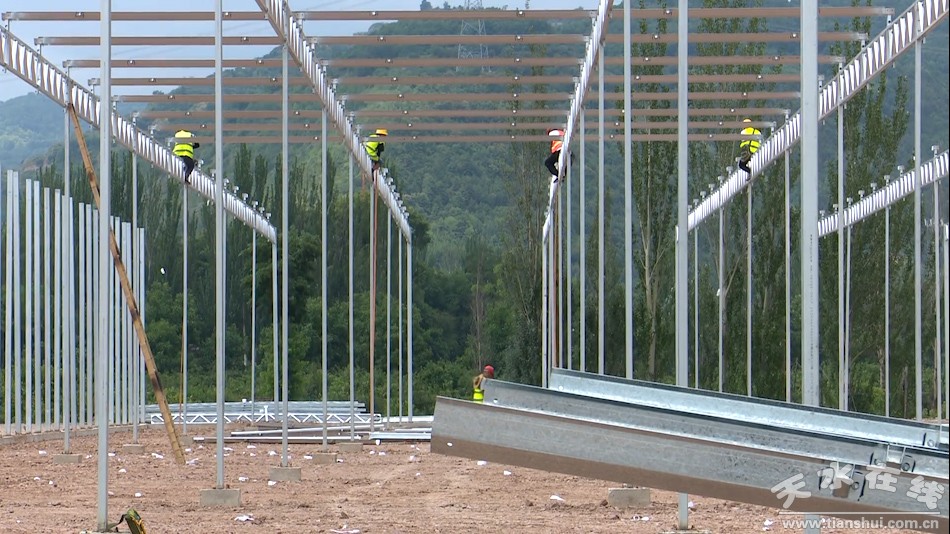 蘭花產(chǎn)業(yè)園項(xiàng)目位于藉口鎮(zhèn)緱家莊村,是秦州區(qū)區(qū)列重點(diǎn)項(xiàng)目。是集農(nóng)業(yè)生態(tài)種植、蘭花良種繁育、產(chǎn)品加工銷售、特色農(nóng)業(yè)展示、生態(tài)休閑觀光為一體的現(xiàn)代農(nóng)業(yè)綜合產(chǎn)業(yè)園。近日,記者在產(chǎn)業(yè)園施工現(xiàn)場看到,銀白色的溫室大棚主體骨架矗立地面,工人們正在進(jìn)行大棚主體的安裝及附屬工程的建設(shè),施工現(xiàn)場一派繁忙景象。