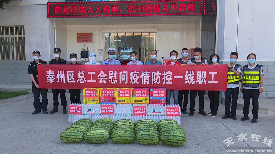 秦州區(qū)融媒體中心7月28日訊(記者 劉利娟)7月28日,秦州區(qū)總工會(huì)走訪慰問(wèn)了堅(jiān)守在疫情防控一線(xiàn)的工作人員。當(dāng)天,慰問(wèn)組先后來(lái)到石馬坪街道、天水西高速卡口,為防疫一線(xiàn)的工作人員送去西瓜、礦泉水、泡面等慰問(wèn)品,向堅(jiān)守在疫情防控一線(xiàn)的工作人員表示感謝和敬意,并叮囑他們要注意做好自我防護(hù)、做到勞逸結(jié)合。