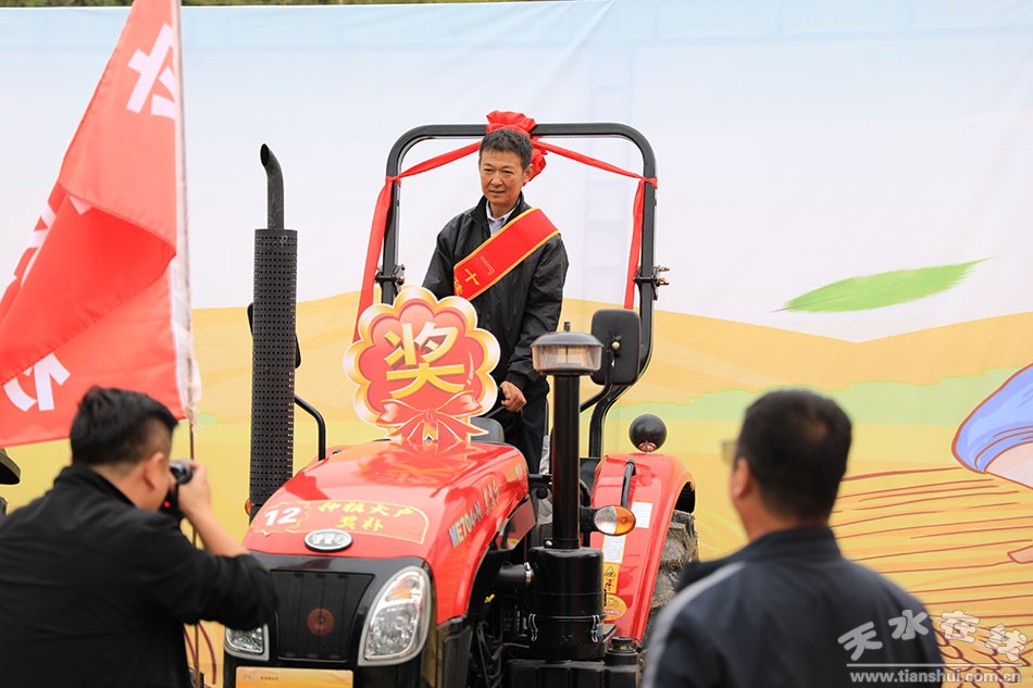 滿園金秋意,喜迎盛會慶豐收。平南鎮(zhèn)蘇灣村秦州區(qū)慶祝第五個“中國農(nóng)民豐收節(jié)”主會場上熱鬧非凡,處處洋溢著豐收的喜悅。此次豐收節(jié)的主題是“慶豐收、迎盛會”。活動在民俗表演《龍鼓喧天慶豐收》中拉開帷幕。當(dāng)天,還表彰了“十佳”種糧大戶,每人獎勵價值8萬元的拖拉機一臺。同時,對全區(qū)撂荒地整治先進合作社發(fā)放獎補資金共計700萬元。