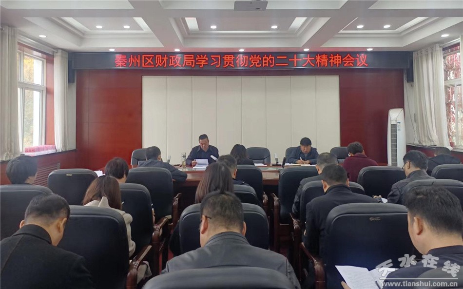 秦州區(qū)財(cái)政局召開會(huì)議,專題學(xué)習(xí)黨的二十大精神。會(huì)議要求,要把學(xué)習(xí)宣傳貫徹黨的二十大精神作為當(dāng)前和今后一個(gè)時(shí)期的首要政治任務(wù),充分認(rèn)識(shí)二十大的重大意義,準(zhǔn)確把握大會(huì)主題,準(zhǔn)確把握新征程上團(tuán)結(jié)奮斗的時(shí)代要求。要準(zhǔn)確領(lǐng)會(huì)“五個(gè)牢牢把握”的重要要求,切實(shí)把思想和行動(dòng)統(tǒng)一到黨的二十大精神上來。要深刻領(lǐng)悟“兩個(gè)確立”的決定性意義,增強(qiáng)“四個(gè)意識(shí)”、堅(jiān)定“四個(gè)自信”、做到“兩個(gè)維護(hù)”,更好履行財(cái)政使命,積極發(fā)揮財(cái)政職能作用,以實(shí)際行動(dòng)堅(jiān)定捍衛(wèi)“兩個(gè)確立”、做到“兩個(gè)維護(hù)”。要落實(shí)好減稅降費(fèi)及留抵退稅政策,從嚴(yán)從緊加強(qiáng)預(yù)算管理,持續(xù)優(yōu)化財(cái)政支出結(jié)構(gòu),切實(shí)提高財(cái)政資金使用效益,多措并舉增加財(cái)政收入,確保全年各項(xiàng)目標(biāo)任務(wù)圓滿完成,為建設(shè)幸福美好新秦州貢獻(xiàn)財(cái)政力量。