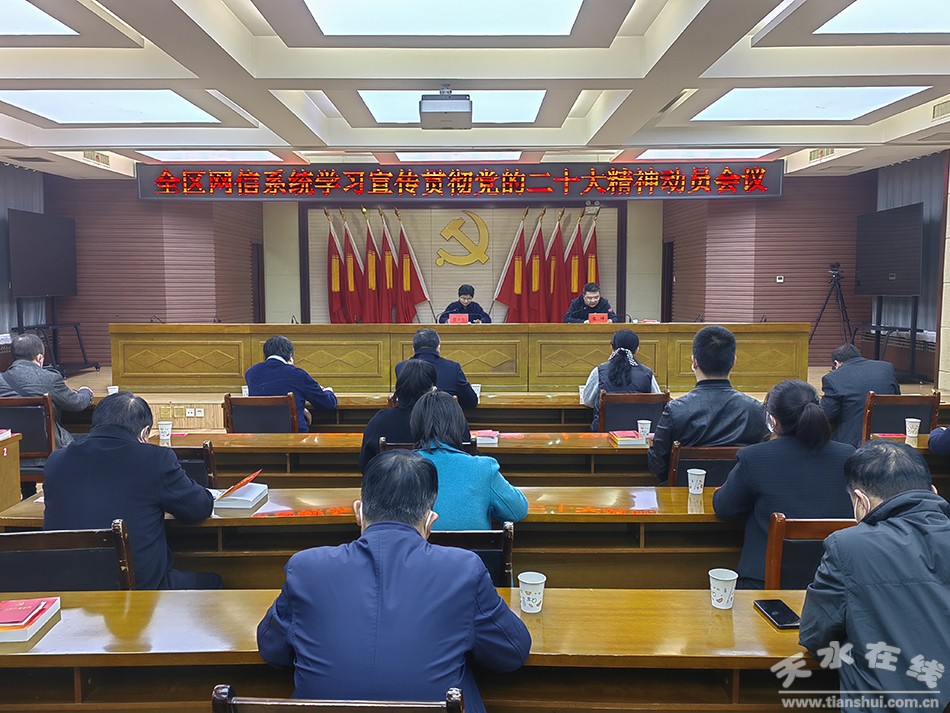 秦州區(qū)融媒體中心11月8日訊 11月7日,秦州區(qū)召開全區(qū)網(wǎng)信系統(tǒng)學(xué)習(xí)宣傳貫徹黨的二十大精神動員會,傳達全市網(wǎng)信系統(tǒng)學(xué)習(xí)宣傳貫徹黨的二十大精神視頻動員會精神,安排部署全系統(tǒng)學(xué)習(xí)宣傳貫徹黨的二十大精神相關(guān)工作。區(qū)委常委、宣傳部部長胡小云出席會議并講話。區(qū)委網(wǎng)信委成員單位、各街道相關(guān)負責(zé)人參加會議。