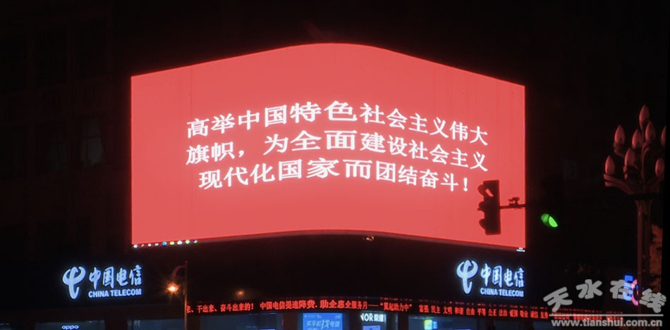 為全力營(yíng)造黨的二十大宣傳氛圍,秦州區(qū)在加大公益宣傳的同時(shí),拓展宣傳載體,利用新媒體、LED屏、宣傳欄、廣告牌等各種載體,對(duì)黨的二十大精神進(jìn)行全方位宣傳。截至目前,已在城區(qū)主干道、商業(yè)街道、大型廣場(chǎng)、居民小區(qū)周邊區(qū)域等公共場(chǎng)所設(shè)置大型景觀花壇7處、戶外電子屏410余塊、過街橋梁標(biāo)語(yǔ)27處,利用交通工具設(shè)置車載電子屏1295塊滾動(dòng)播放黨的二十大精神宣傳標(biāo)語(yǔ)。在各鎮(zhèn)主要道路兩側(cè)、黨政機(jī)關(guān)所在地、新時(shí)代文明實(shí)踐所(站)、村社區(qū)文化服務(wù)中心、鄉(xiāng)村舞臺(tái)布設(shè)墻體畫及墻板海報(bào)193處、宣傳標(biāo)語(yǔ)568處。在各級(jí)黨政機(jī)關(guān)、企事業(yè)單位辦公場(chǎng)所及周邊區(qū)域,因地制宜制作宣傳牌,積極營(yíng)造“抬頭看得見、隨處可以學(xué)、時(shí)時(shí)能感受”的濃厚社會(huì)氛圍。