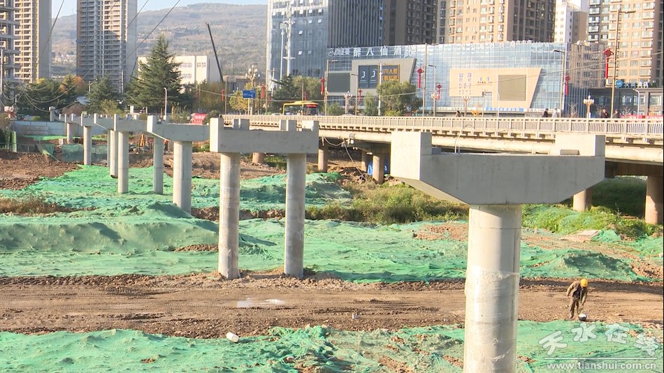 日前,記者在岷山路五里鋪大橋西側(cè)的10KV電力遷改工程的施工現(xiàn)場看到,藉河河道以及北側(cè)藉河風(fēng)情線中的所有橋墩已全部建設(shè)成型,其他工程作業(yè)正在進行當中。
