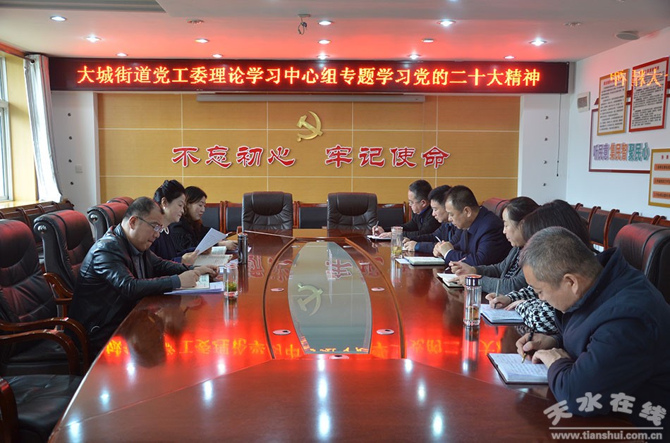 大城街道黨工委理論學(xué)習(xí)中心組專題學(xué)習(xí)黨的二十大精神。會議要求,要將學(xué)習(xí)宣傳貫徹黨的二十大精神作為當(dāng)前和今后一個時期的首要政治任務(wù),充分調(diào)動各種宣傳資源,通過沿街LED屏、張貼海報、制作宣傳版面、用好文化墻等措施,充分發(fā)揮新時代文明實(shí)踐所(站)平臺陣地作用,迅速掀起學(xué)習(xí)宣傳貫徹的熱潮,保證大會精神學(xué)習(xí)宣傳的深度和廣度;街道上下要結(jié)合集中學(xué)習(xí)和自學(xué)的方式,學(xué)原文、悟原理,撰體會、談感悟,學(xué)深悟透,學(xué)以致用;要學(xué)深悟透大會報告的核心要義、精神實(shí)質(zhì)、豐富內(nèi)涵、實(shí)踐要求,并做好學(xué)習(xí)成果的轉(zhuǎn)化應(yīng)用,指導(dǎo)推動街道基層黨的建設(shè)、疫情防控、文明城市創(chuàng)建、轄區(qū)經(jīng)濟(jì)社會發(fā)展等各項(xiàng)工作高質(zhì)量發(fā)展。